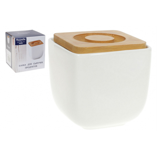 Банка фарфоровая для сыпучих продуктов 400 мл с бамбуковой крышкой Naturel BonaDi 375-371