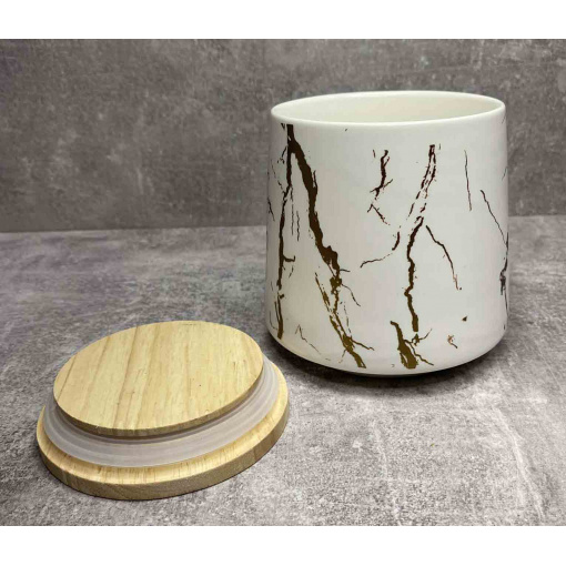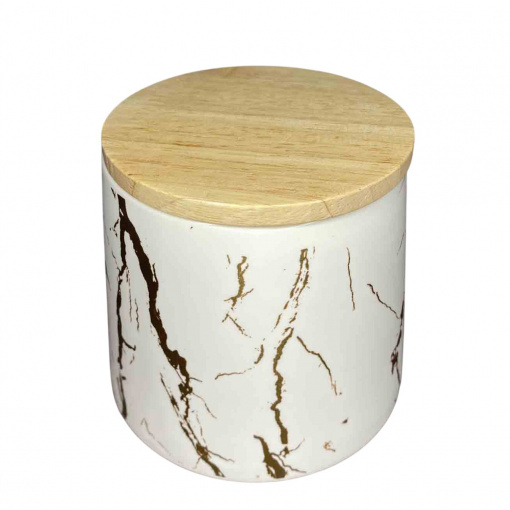 Банка фарфоровая с бамбуковой крышкой 520 мл белая Bona Di 805-707 Банка фарфоровая круглая с бамбуковой крышкой BonaDi подходит для хранения сыпучих продуктов в условиях комнатной температуры. Крышка обеспечивает надежное хранение продуктов. Хранение продуктов должно быть не только удобным, но и красивым. Характеристика: Вид: Банка Материал: Фарфор Объем: 520 мл Цвет: Белый Декор: Мрамор Назначение: Для сыпучих