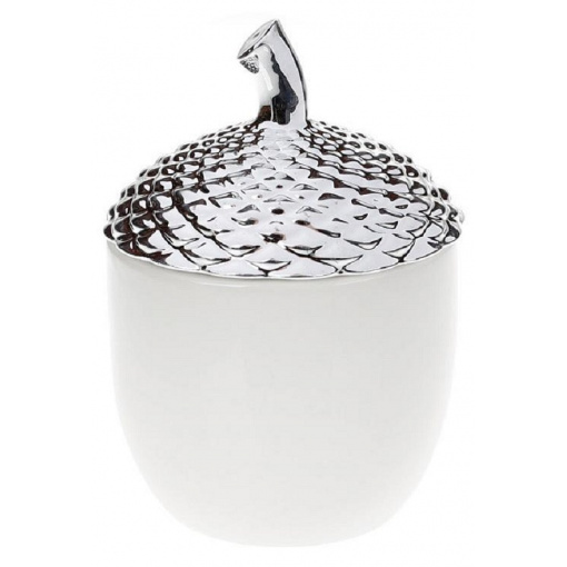 Керамическая банка "Серебристый желудь" в оригинальном дизайне - выполнена в форме желудя с серебристой шляпкой-крышкой. Объем 300мл. Симпатичная баночка может использоваться на кухне для сыпучих и любых других типов продуктов, а также в качестве предмета украшения интерьера или декора для фотозон.