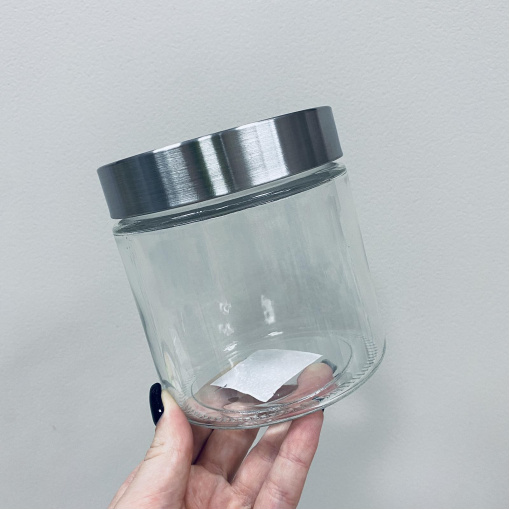Банка стеклянная с металлической крышкой для сыпучих продуктов 850 мл S&T 7056-2 Банка стеклянная круглая подходит для хранения сыпучих продуктов в условиях комнатной температуры. Крышка обеспечивает надежное хранение продуктов. Хранение продуктов должно быть не только удобным, но и красивым. Характеристики: Вид: Банка Материал: Стекло Материал крышки: Металл Объем:: 850 мл Высота: 12 см Диаметр: 10,4 см Назначение: Для сыпучих продуктов Цвет: Прозрачный