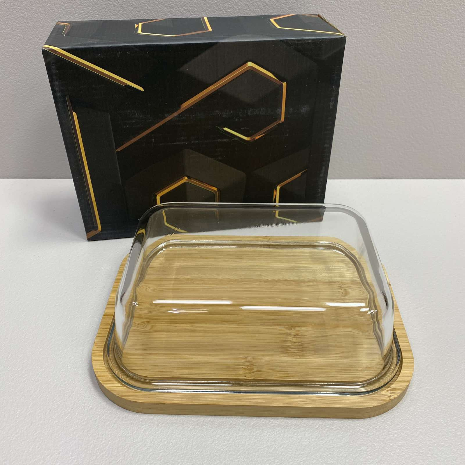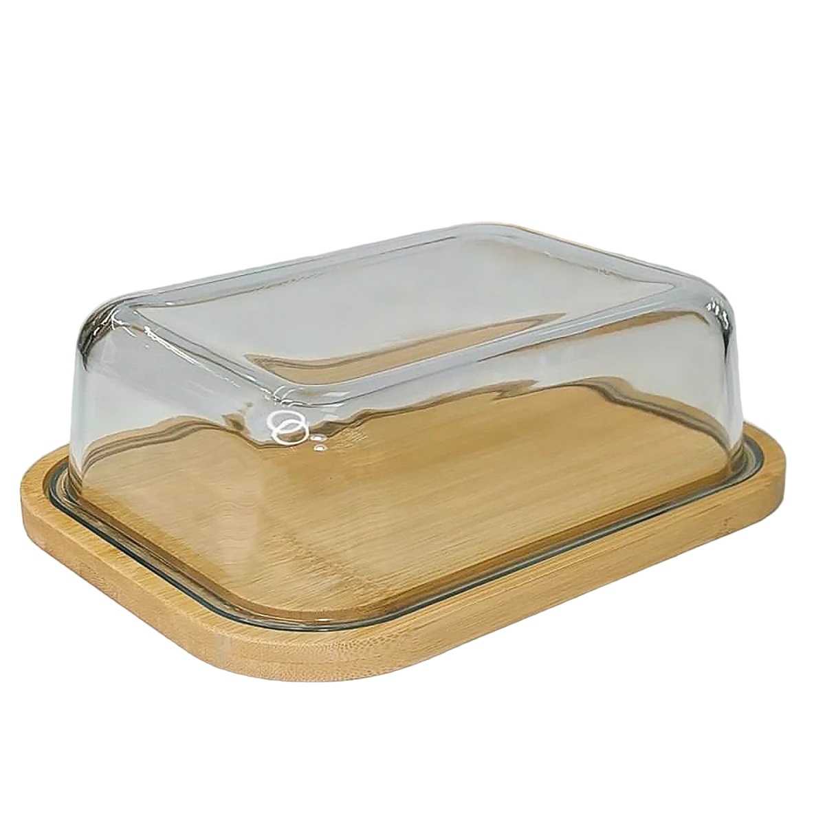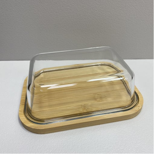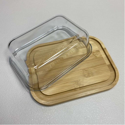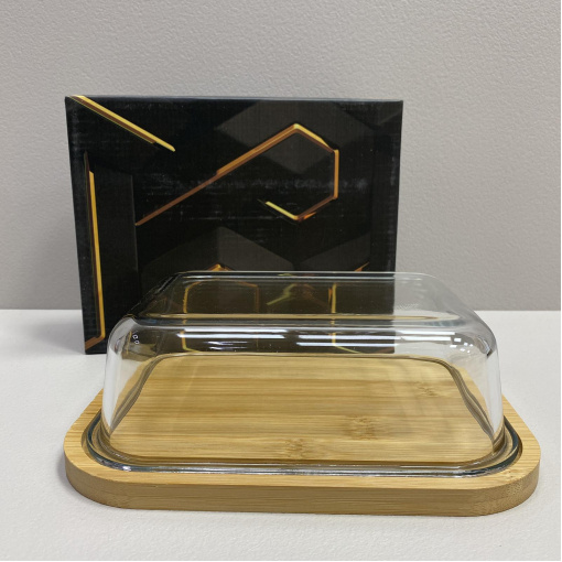 Блюдо-сырница бамбуковая со стеклянной крышкой 21,4х16,5х6,5 см OLens O102-629