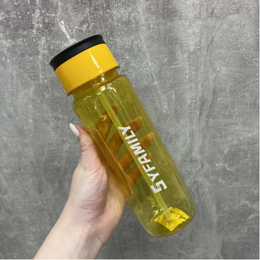 Бутылка для воды пластиковая с трубочкой 1 л Stenson WW00649 желтая
