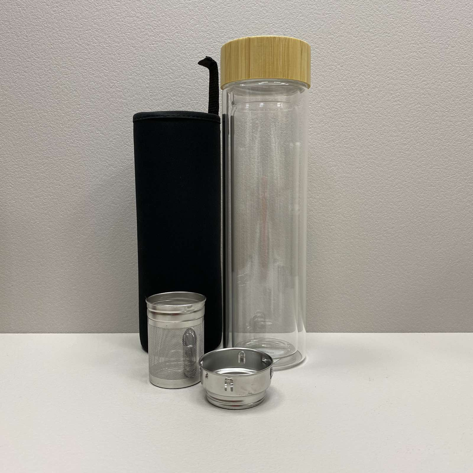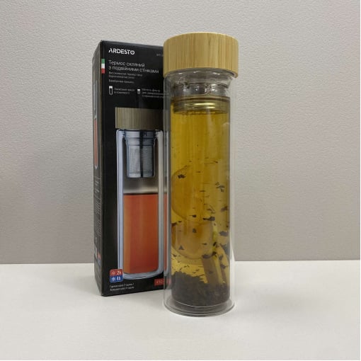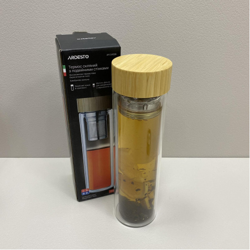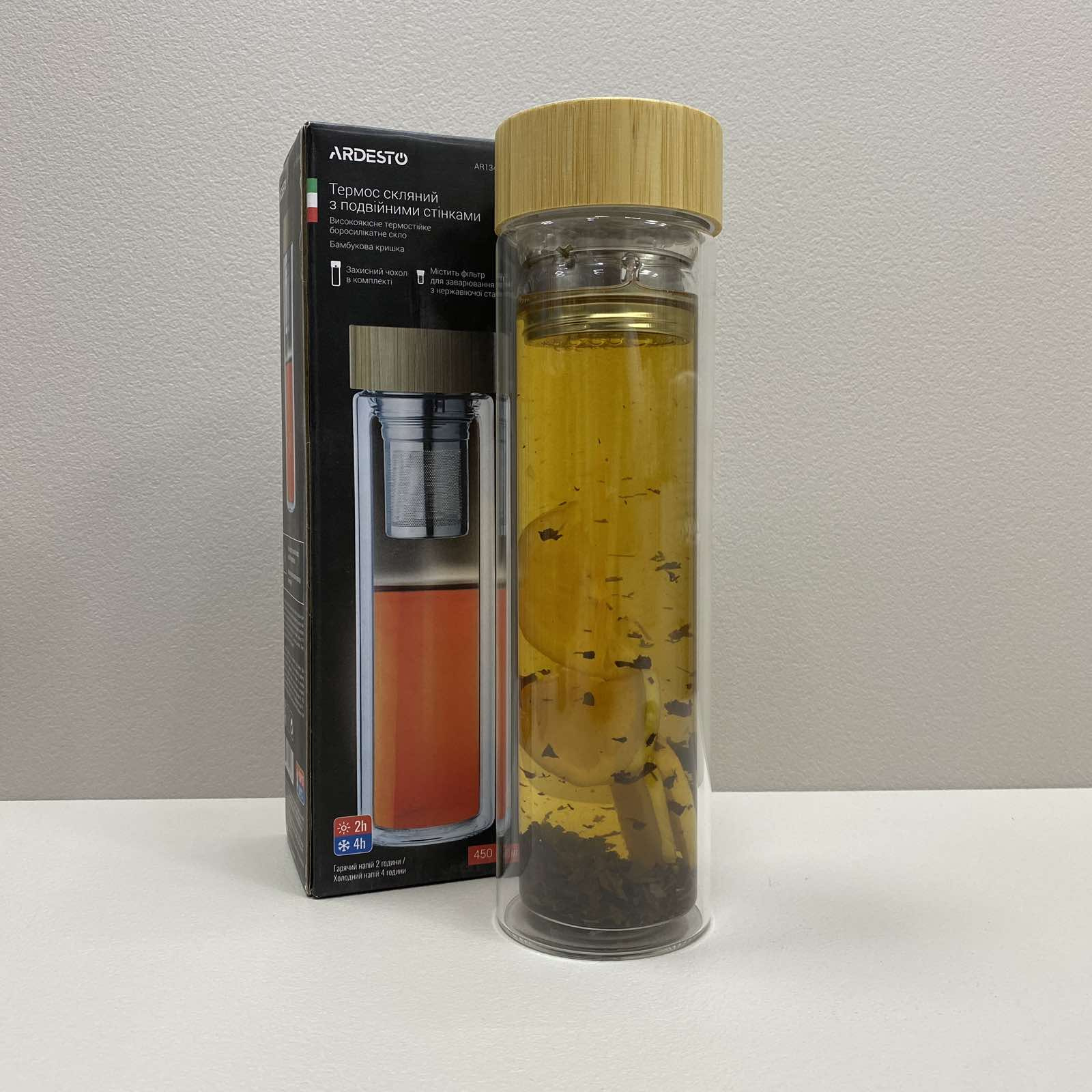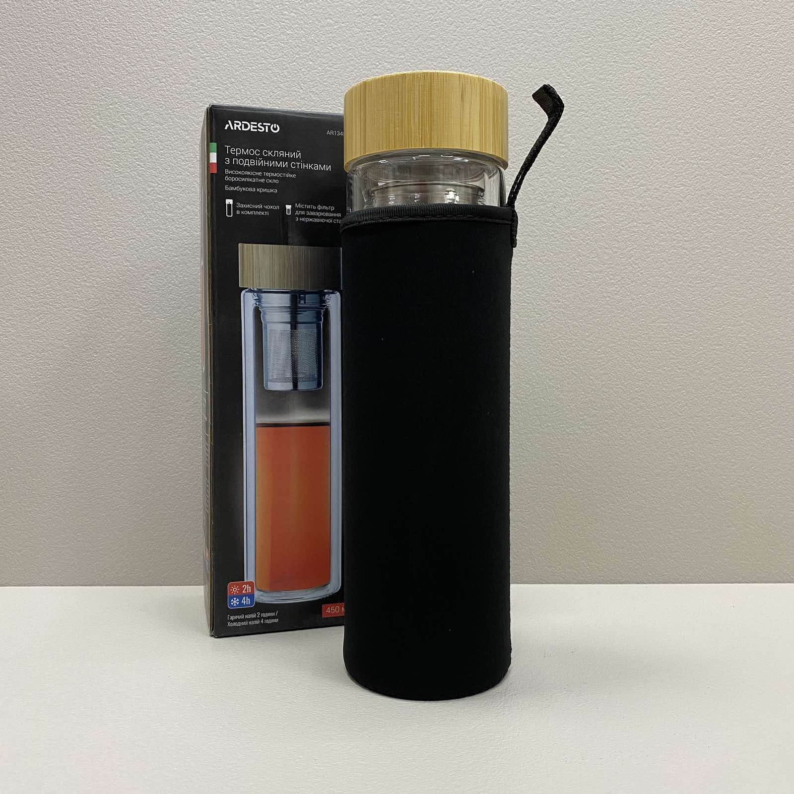 Бутылка из термостекла с двойными стенками с бамбуковой крышкой в ​​чехле 450 мл Ardesto AR1345BB