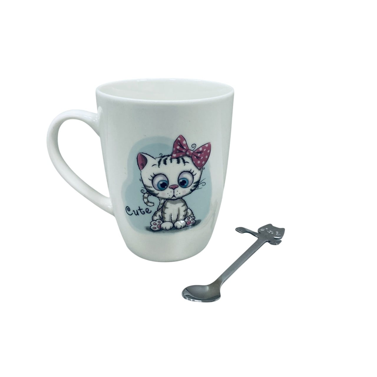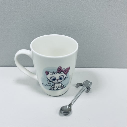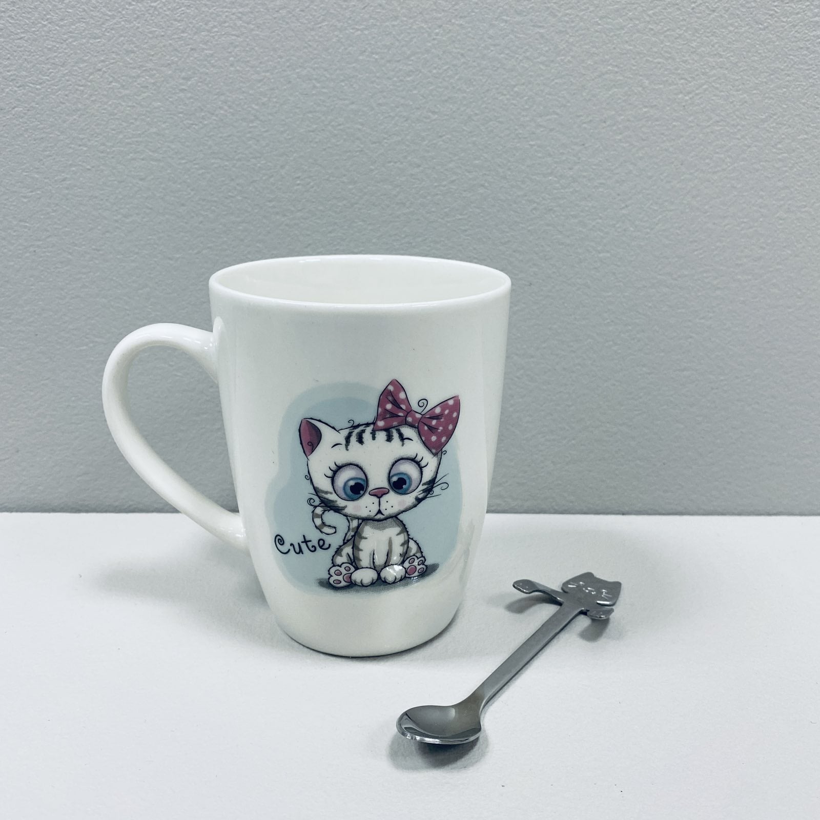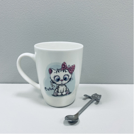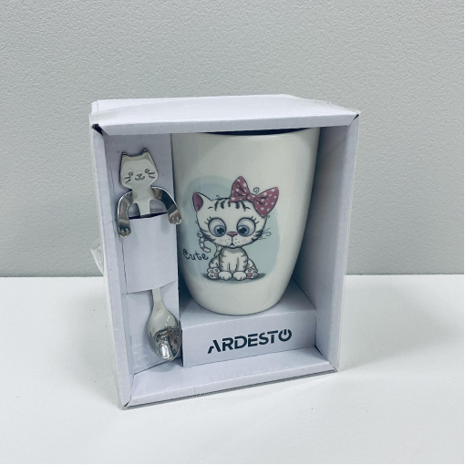 Чашка фарфоровая с ложкой Ardesto Cute AR3040BS 320 мл