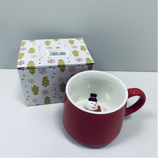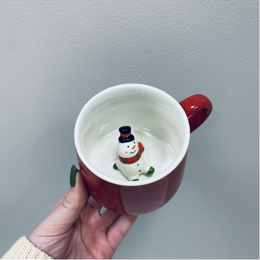 Чашка керамическая 350 мл "Сюрприз-снеговик" Olens 102-1022 Характеристика: Вид: Чашка Материал: Керамика Объем: 350 мл Цвет: Красный с белым Высота: 8,2 см Диаметр: 9 см