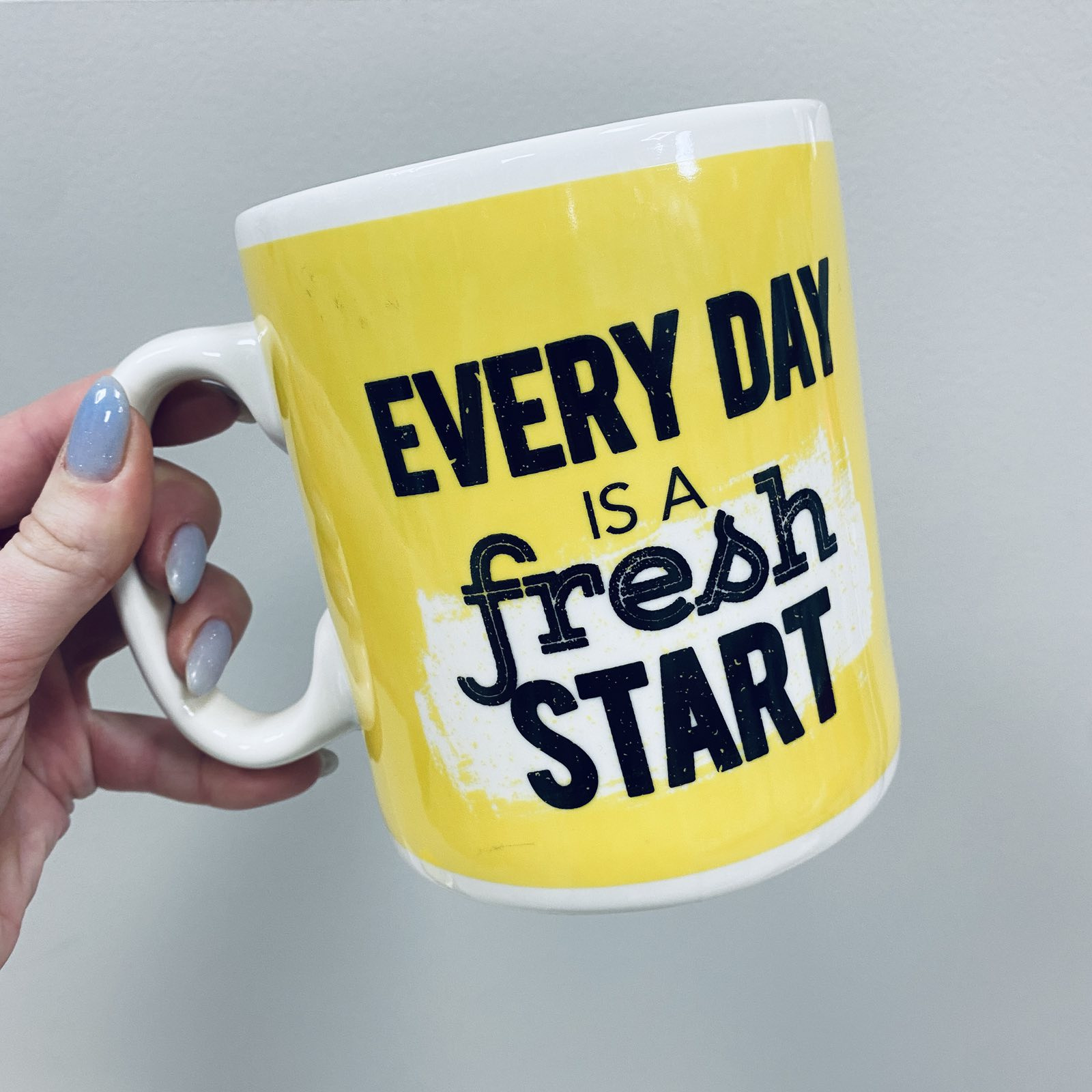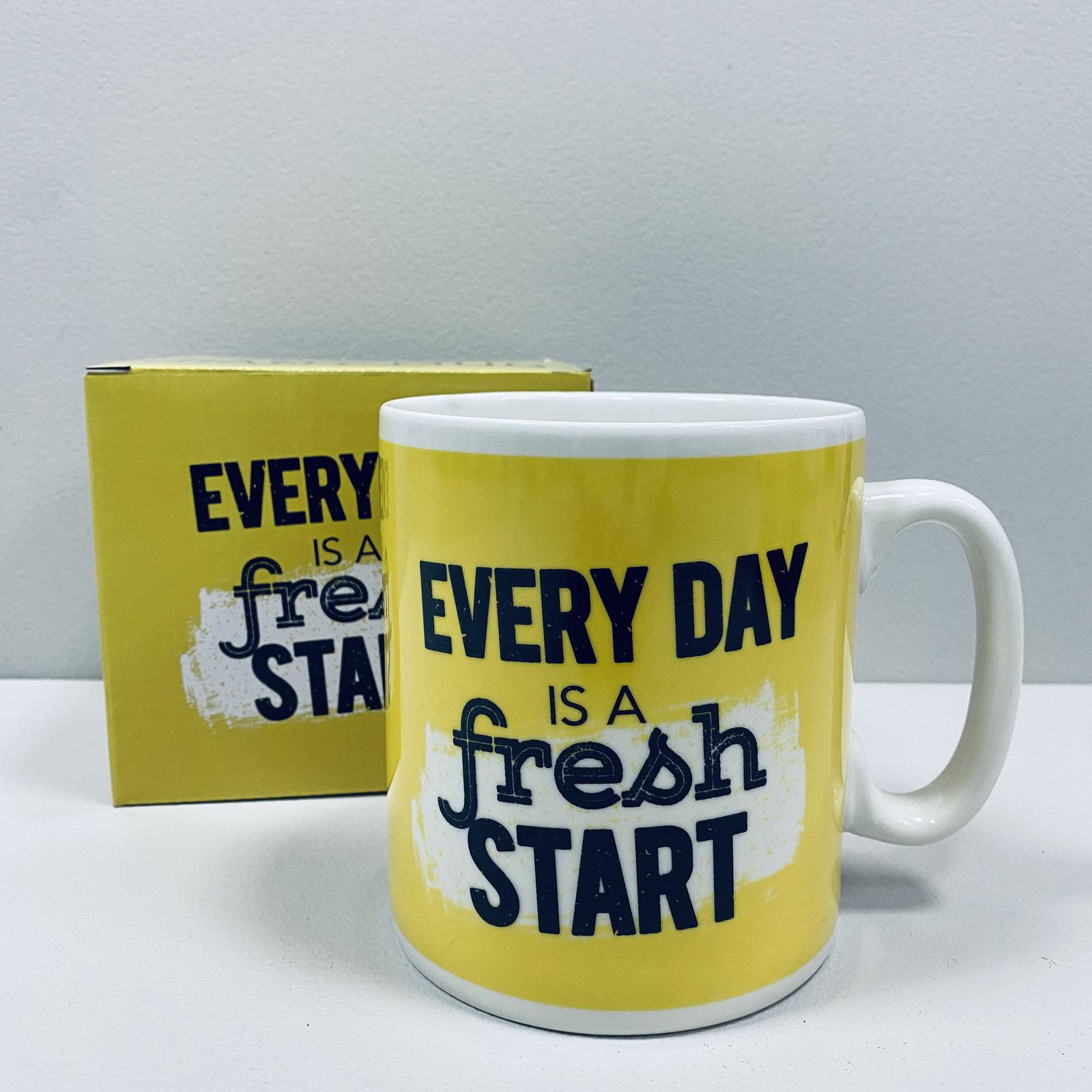Чашка керамическая 800 мл "Every day is a fresh start" XXL Olens 3227 Это очень большая кружка, в несколько раз больше обычной кружки, ее объем - 800 мл. Удобная широкая ручка под крепкую руку, значительный объем и простота дизайна – три слагаемых, дающих в сумме хороший подарок. Подарите такую кружку начальнику, либо просто другу, либо коллеге по работе, и он будет пить горячие и холодные напитки только из этой кружки, ведь его значительный размер сразу привлекает к себе внимание окружающих! Это незабываемый подарок! Оригинальная чашка по которой сразу будет виден кто здесь большой босс из-за ее размеров. Характеристика : Вид: Чашка Материал: Керамика Объем: 800 мл Цвет: Желтый с белым Высота: 12,5 см Диаметр: 11 см