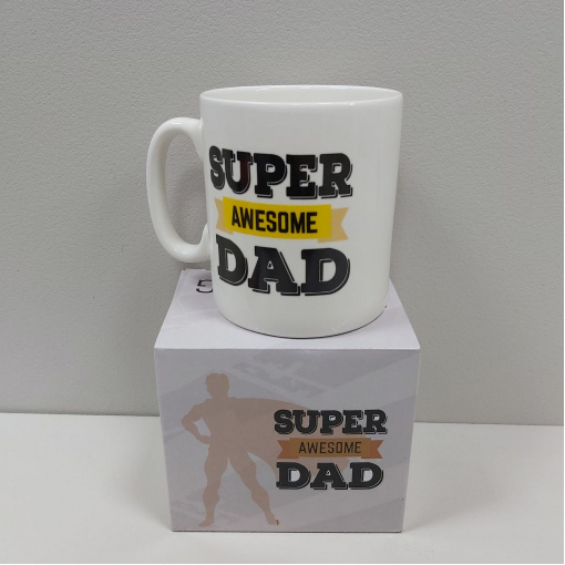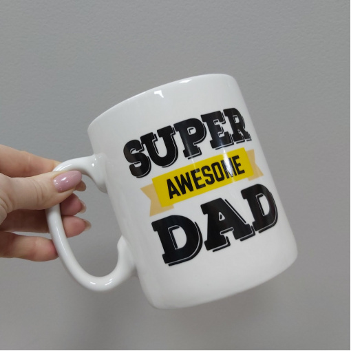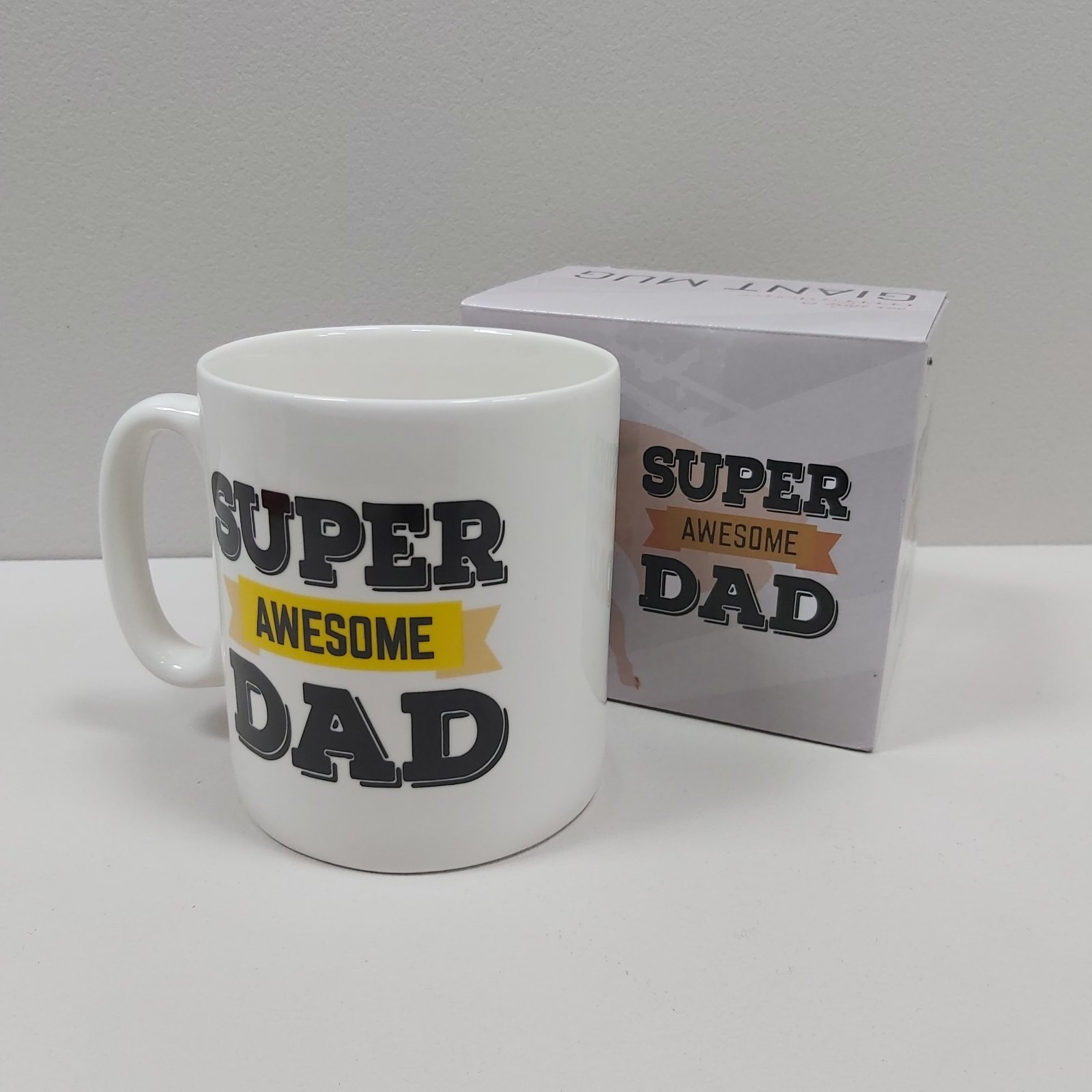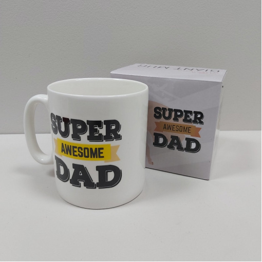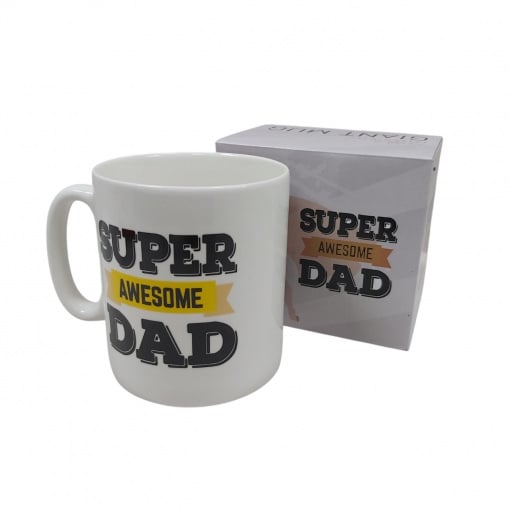 Чашка керамическая 800 мл "Super awesome dad" XXL Olens 3234 Это очень большая кружка, в несколько раз больше обычной кружки, ее объем - 800 мл. , или просто другу, или коллеге по работе, и он будет пить горячие и холодные напитки только из этой кружки, ведь ее значительный размер сразу привлекает к себе внимание окружающих!Это незабываемый подарок! Характеристика : Вид: Чашка Материал: Керамика Объем: 800 мл Цвет: Белый Высота: 12,5 см Диаметр: 11 см