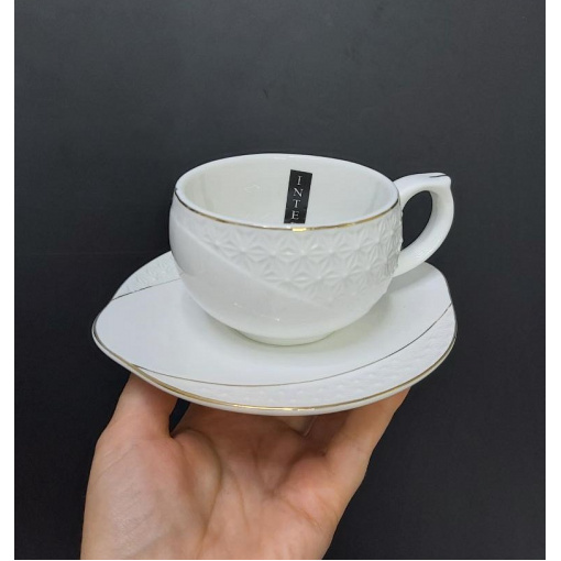 Чашка с блюдцем 240 мл фарфоровая белая Снежная королева Interos 508610-A