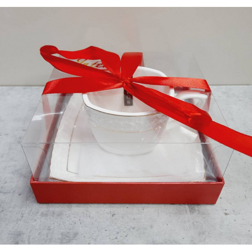Чашка с блюдцем 240 мл квадратная фарфоровая белая Снежная королева Interos S507009-AGIFT 73059