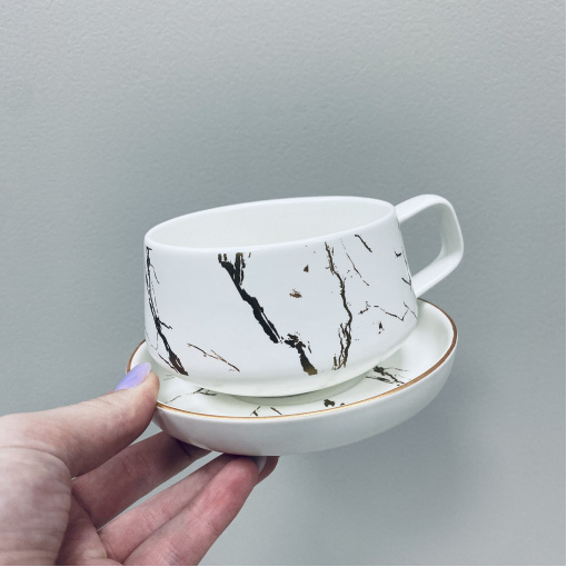 Подробные характеристики Чашка с блюдцем фарфоровая BonaDi 805-728 Мраморная Роскошь 320 мл.