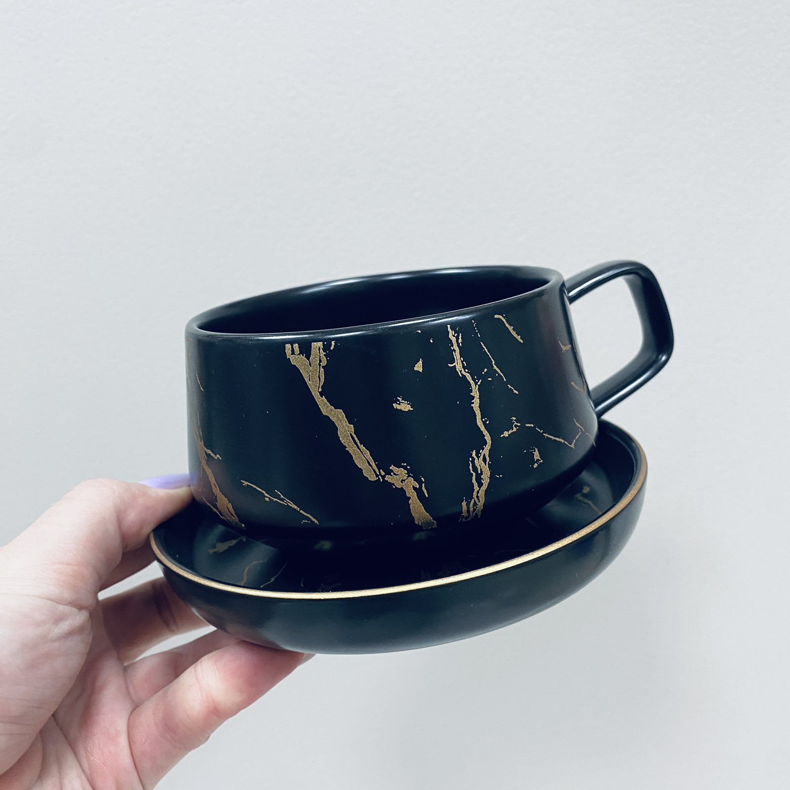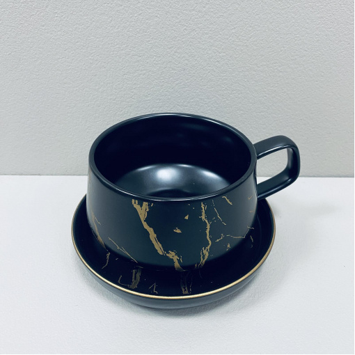 Чашка с блюдцем фарфоровая 320 мл Мраморная Роскошь BonaDi 805-731 Характеристика: Вид: Чашка с блюдцем Материал: Фарфор Объем: 320 мл Цвет: Черный мрамор Размер: блюдца – d – 13,4 см, h – 2,5 см, чашки – d – 9.6 см, h – 6,5 см