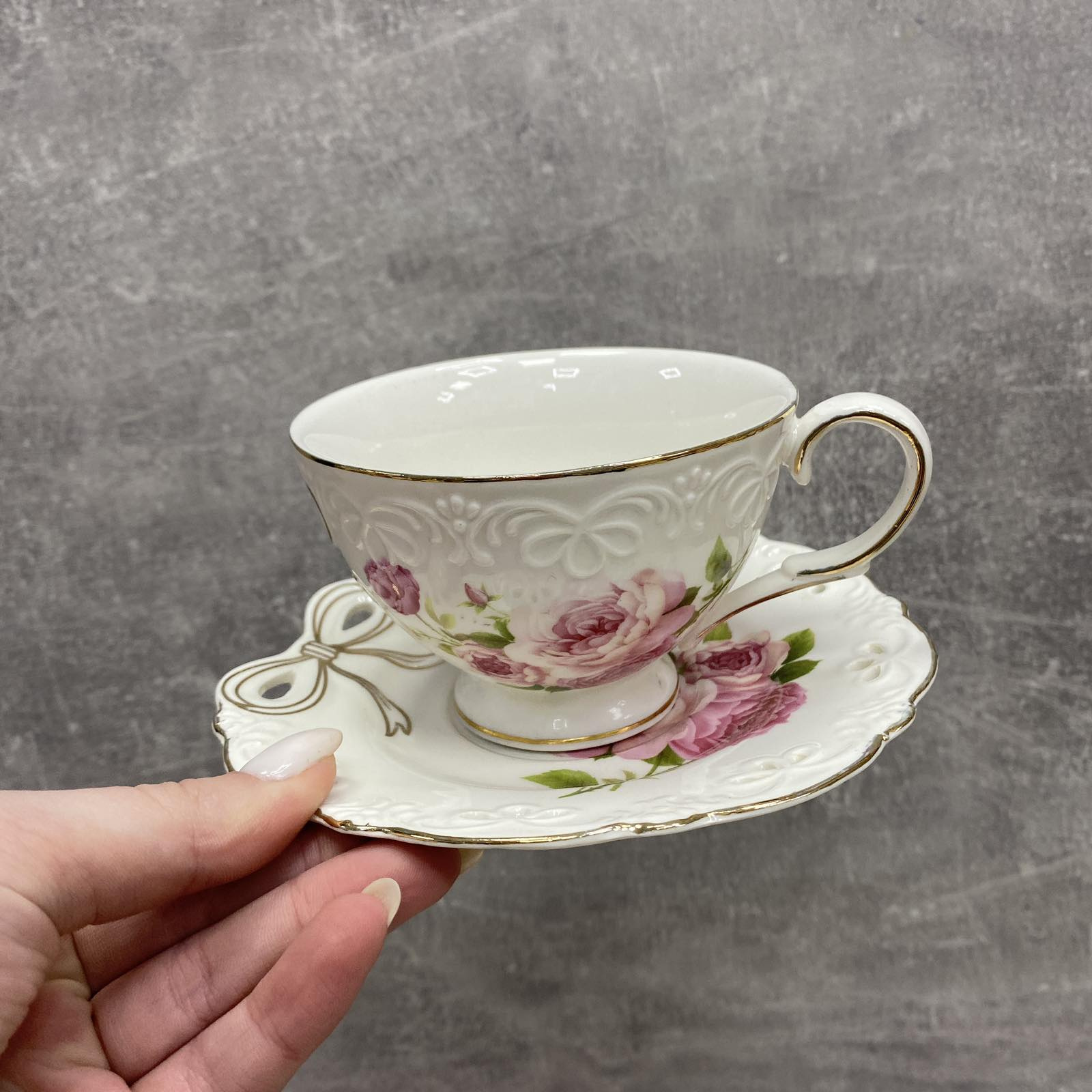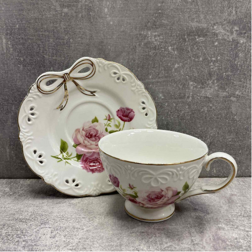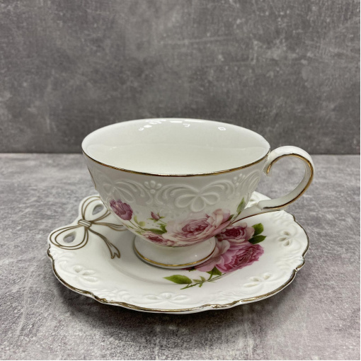 Чашка с блюдцем фарфоровая S&T 2335 240 мл Бант
