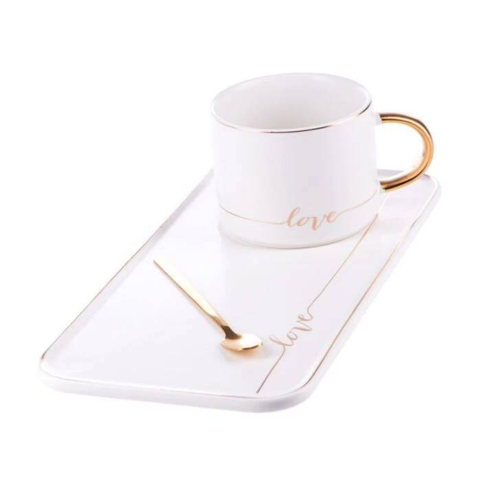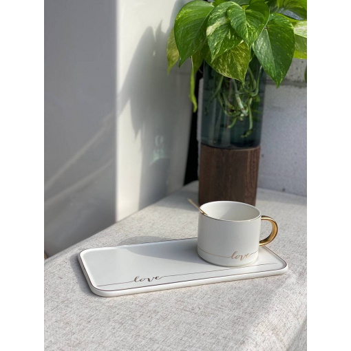 Чашка с блюдцем и ложкой "Love", 200 мл белая O8030-129