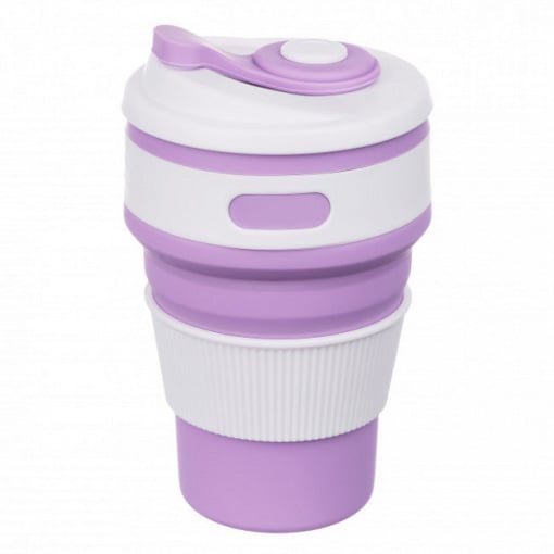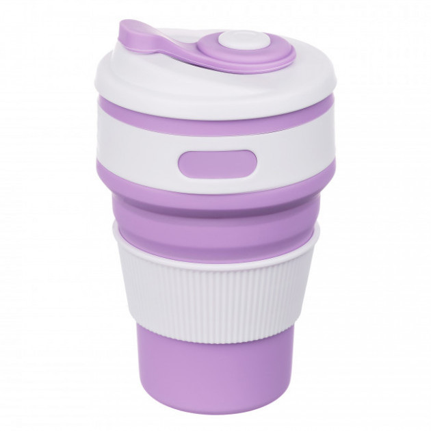 Чашка складная силиконовая с крышкой 350 мл фиолетовая 5332