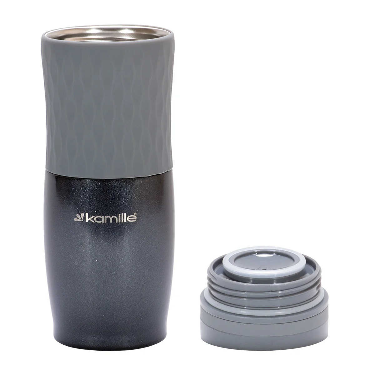 Чашка-термос 500 мл Kamille из нержавеющей стали с TPR вставкой серый КМ-2047