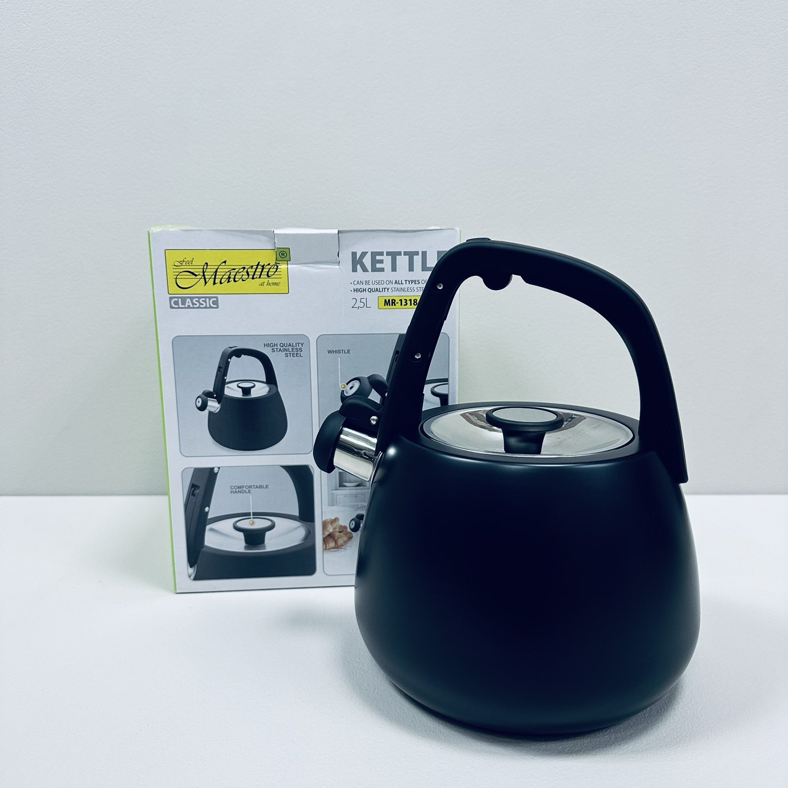Чайник из нержавеющей стали со свистком 2.5 л Maestro MR-1318 Черный