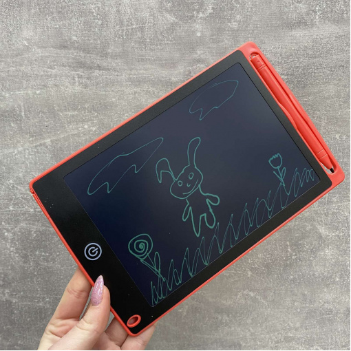 LCD планшет для рисования Writing Tablet с диагональю экрана 8,5 дюйма. LCD-планшеты для рисования –  поколение гибких электронных технологий для многократного использования ~100 000 раз, что эквивалентно экономии 100 000 листов бумаги. LCD-планшет может использоваться для записи текста от руки, заметок, чертежей, эскизов, живописи, практики каллиграфии и рисования, а также общения (особенно для тех, кто плохо слышит). Широкий спектр использования в сферах: дошкольное образование, обучение, работы в офисе, бытовых условиях или просто для развлечений и отдыха. красочный жидкокристаллический экран и удобный стилус позволяют контролировать качество отображения текста и графики. Благодаря чувствительности экрана к нажатию, плавные линии получаются легко. А специальная кнопка предназначена для быстрого стирания содержимого на экране только одним прикосновением. Переключатель блокировки экрана обеспечивает сохранение текста или графики в течение длительного времени без удаления. Безопасно для взрослых и детей, отсутствие вредного излучения, защита для глаз! Изделие изготовлено из безопасных материалов, отсутствие мерцания экрана без подсветки, высокая контрастность, что позволяет защитить глаза при использовании и не влияет на ухудшение зрения и развитие близорукости.