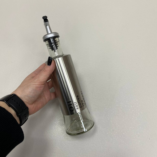 Бутылка стеклянная с дозатором – незаменимый помощник для каждой хозяйки. Удобна для хранения любых жидкостей – масла, уксуса, соусов и т.п. Оснащена плотной резиновой пробкой.