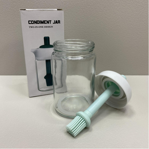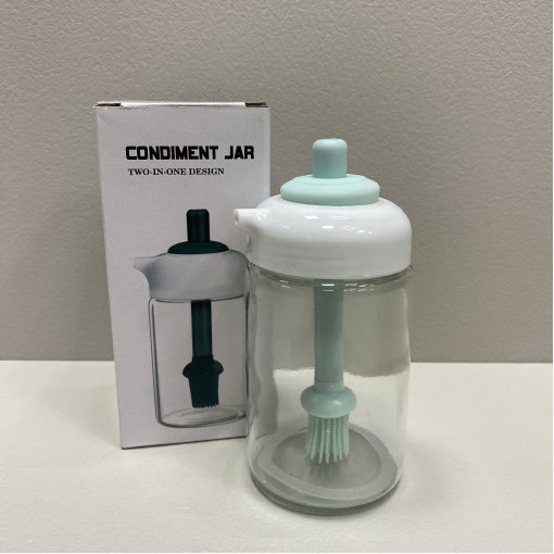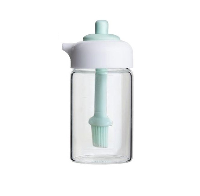 Емкость для масла с силиконовой кисточкой стеклянная 250 мл A-Plus OB-25/6256 прозрачная с бирюзовым