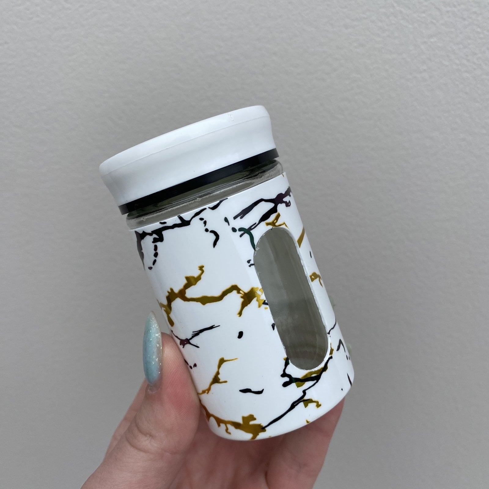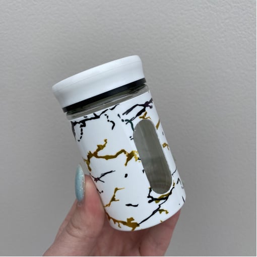Подробные характеристики Емкость для специй 5х8,4 см Stenson MT-4231 белый мрамор.
