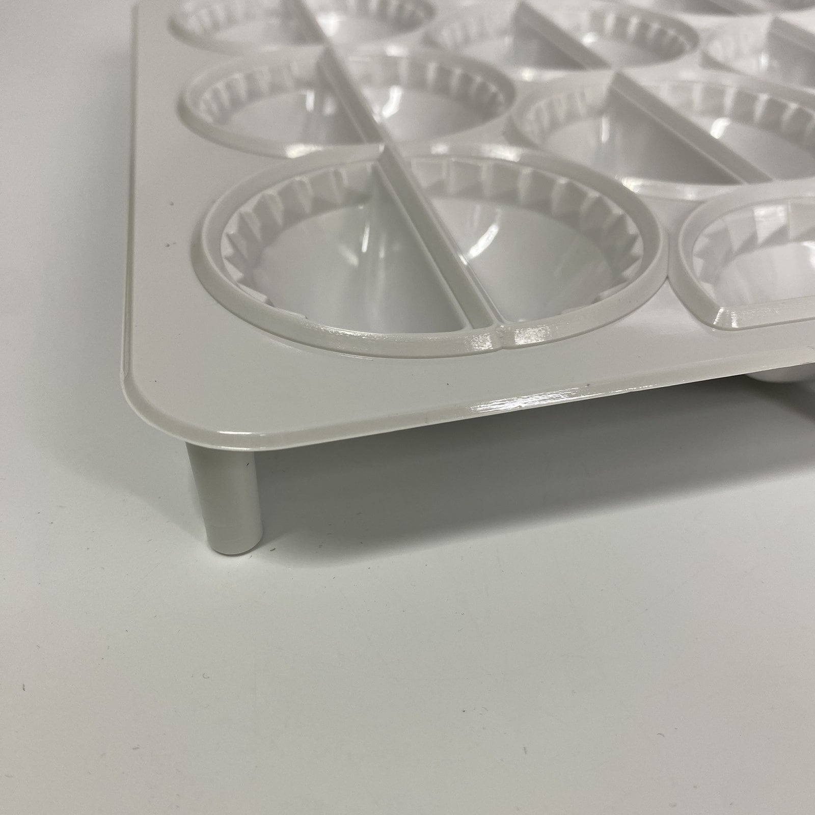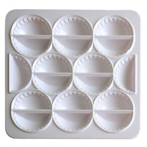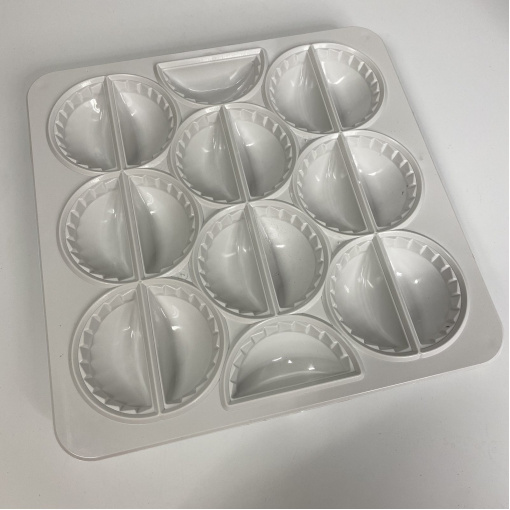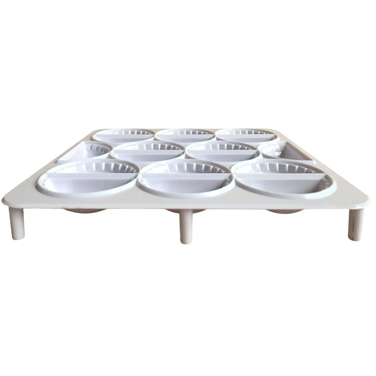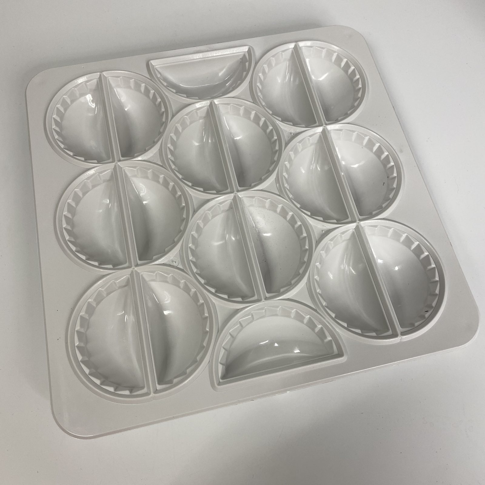 Форма для лепки вареников пластиковая Stenson R92265 Специальная пресс-форма для вареников позволит вам за один раз приготовить до 18 вареников без усилий и затрат времени. При этом можете не беспокоиться, ведь все края будут надежно склеены и не раскроются во время варки. Идеально подходит для изготовления домашних вареников, на форму кладут раскатывший листок теста и в каждое отверстие помещают начинку, сверху устраивают еще один лист теста и раскатывают качелями до образования выразительных линий между пельменями или до полной отслойки пельменей друг от друга. Характеристика: Вид: Форма Назначение: Для лепки вареников Материал: Пластик Цвет: Белый Размер: 23,5*23,5 см Высота: 2,5 см