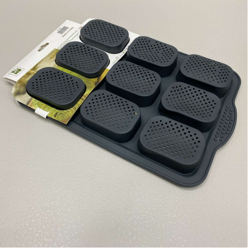 Форма перфорированная силиконовая для выпечки булочек 33,1*23,4*2,5 см SNS MM-1193/1225 черная Эта форма идеально подходит для выпечки свежих булочек и подогрева ранее приготовленных. Благодаря перфорированным отверстиям для циркуляции воздуха булочки получаются с хрустящей корочкой, а удобная силиконовая форма гарантирует легкость отделения выпечки от формы. Форма рассчитана для выпечки девяти булочек одновременно, чтобы все родные и близкие смогли отведать кусочек этой вкусной и хрустящей выпечки. Характеристика: Вид: Форма для выпечки Материал: Силикон Размер: 33,1*23,4*2,5 см Размер: секции – 8,2*6*2,5 см Количество секций для выпечки: 9 Цвет: Черный