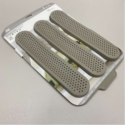 Форма перфорированная силиконовая для выпечки хлеба и багетов 34,2*23,4*2 см SNS MM-1192/1248 бежевая Эта форма идеально подходит для выпечки свежих французских багетов и подогрева ранее приготовленных. Благодаря перфорированным отверстиям для циркуляции воздуха багеты выходят с хрустящей корочкой, а удобная силиконовая форма гарантирует легкость отделения выпечки от формы. Форма рассчитана для выпечки трех багетов одновременно, чтобы все родные и близкие смогли отведать кусочек этого вкусного и хрустящего хлеба. Характеристика: Вид: Форма для выпечки Материал: Силикон Размер: 34,2*23,4*2 см Размер: секции - 27,7*6*2 см Количество секций для выпечки: 3 Цвет: Бежевый