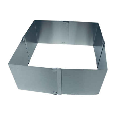 Форма для выпечки из нержавеющей стали раздвижная "Квадрат" 15-28*12 см Stenson R92418 Раздвижная форма позволяет вместо целого комплекта форм разных размеров, приобрести одну, что экономит средства и место на полке. Квадратная может быть использована как форма для сбора тортов, форма для выпечки, форма для заливки желе, суфле и муссов. Форма изготовлена ​​из нержавеющей стали и снабжена разъемными замками, что очень удобно, потому что Вам не придется мучиться, чтобы извлечь готовое изделие из формы. Характеристика: Вид: Форма Назначение: Для выпечки, сбора тортов Материал: Нержавеющая сталь Размер: от 15 до 28 см Высота: 12 см Форма: Квадратная Цвет: Стальной