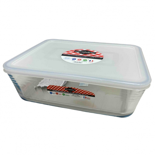 Форма прямоугольная для выпечки с крышкой 4 л 27,8*23*9 см O Cuisine 244CF01 Форма для выпекания изготовлена ​​из боросиликатного стекла. Данную модель, без крышки, можно использовать в духовке и микроволновке. Материал выдерживает температуру 300°С. Характеристика: Вид: Форма Назначение: Для выпечки Материал: Стекло Материал крышки: Пластик Объем: 4 л Размер: 27,8*23*9 см Цвет: Прозрачный