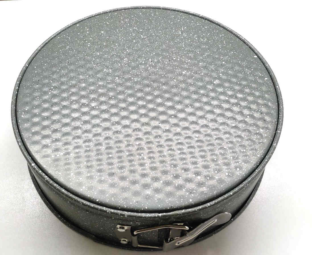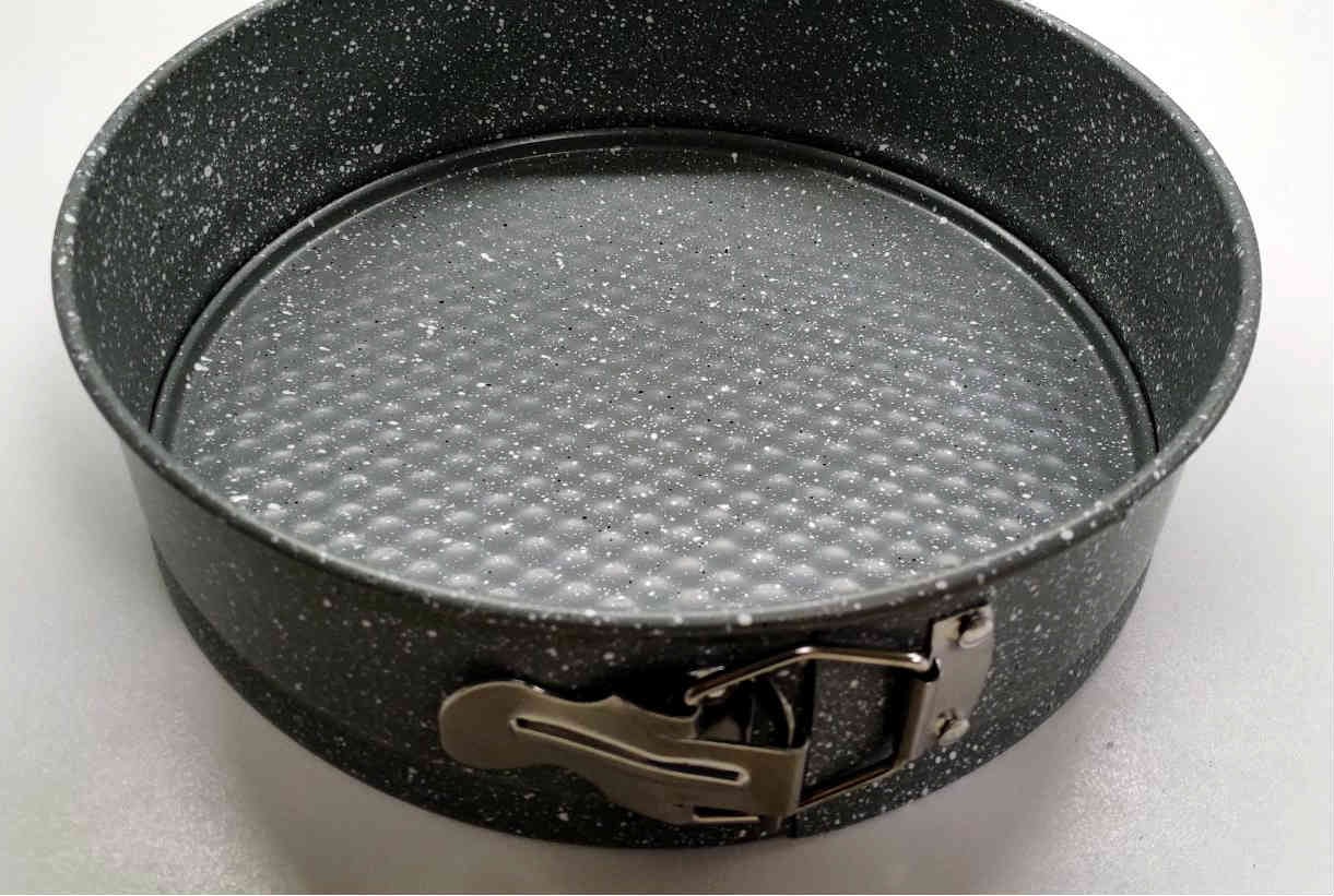 Форма для выпечки с антипригарным покрытием, выполнена из высококачественной углеродистой стали, имеет разъемный механизм. Форма равномерно и быстро прогревается, что способствует лучшему пропеканию пищи. Особое высокотехнологичное антипригарное покрытие препятствует пригоранию и обеспечивает легкую очистку после использования.