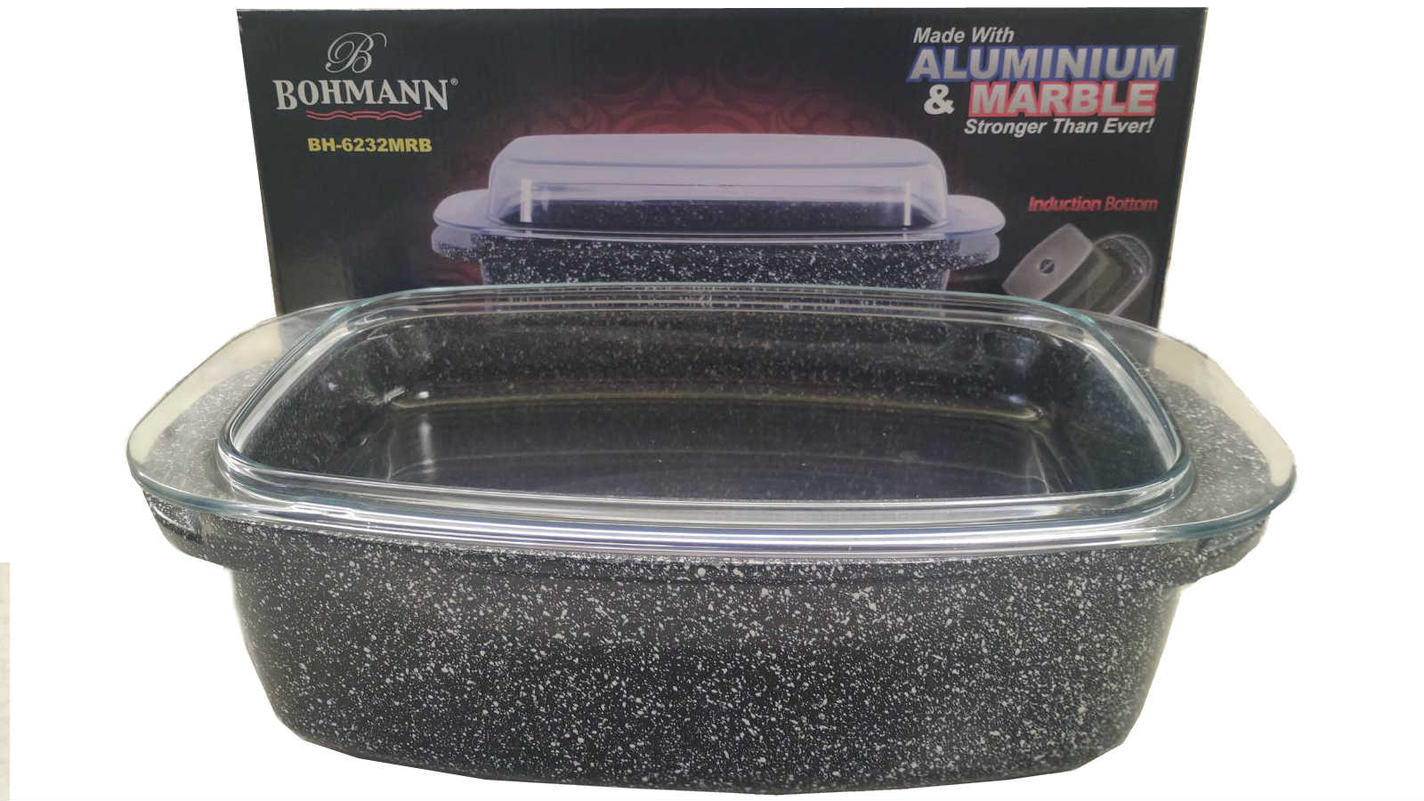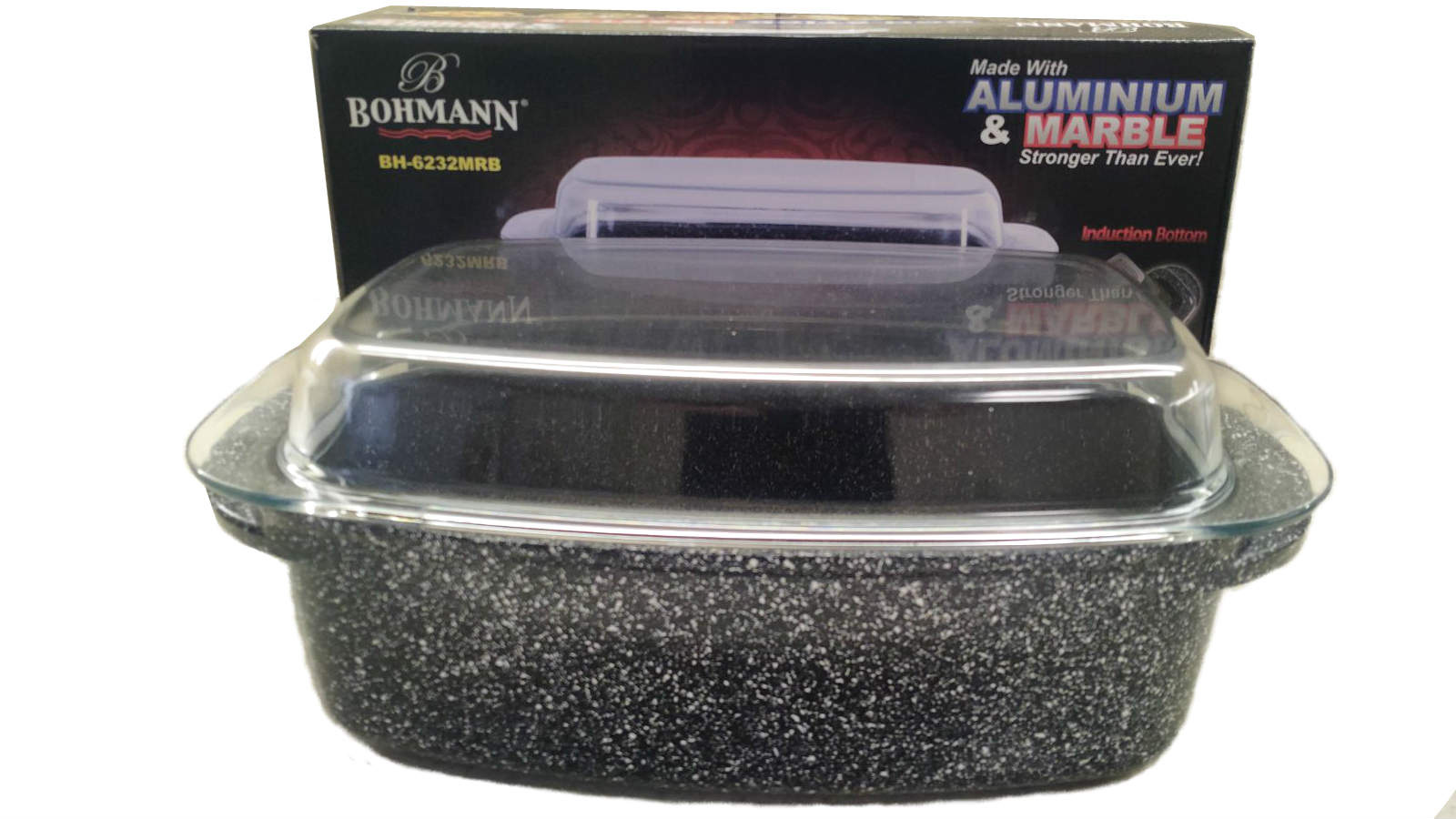 Гусятницы Bohmann BH 6232 MRB Гусятница Bohmann BH 6232 MRB изготовлена из литого алюминия с мраморным покрытием и оснащена 3-х слойным дном.