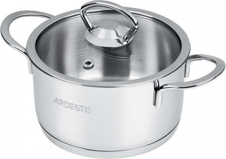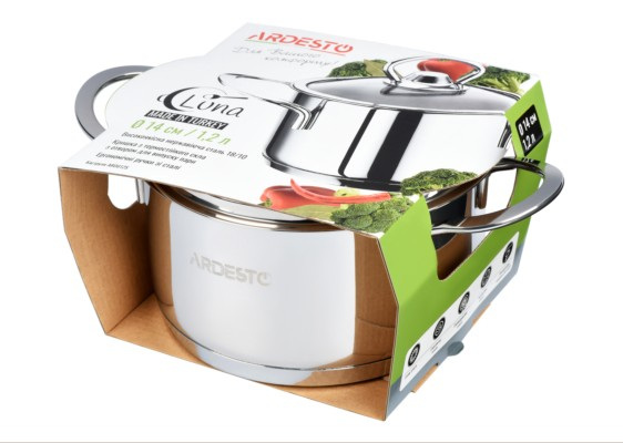 Кастрюля Luna Ardesto это кастрюля из высококачественной нержавеющей стали. В комплекте с кастрюлей идет стеклянная крышка с отверстием для выхода пара. Она совместима со всеми видами плит, включая индукционную. Для очистки кастрюли можно использовать посудомоечную машину.