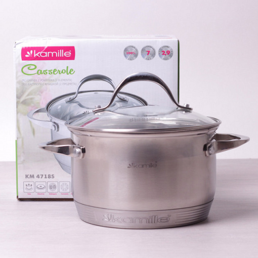 Кастрюля 2,9 литра из нержавеющей стали с крышкой и 7-слойным дном d-18 h-11.5 см Kamille KM-4718S