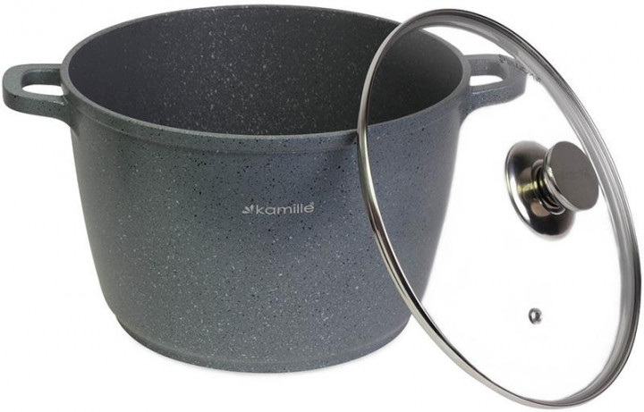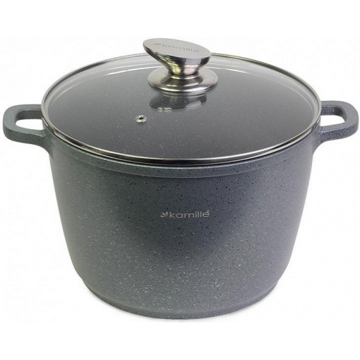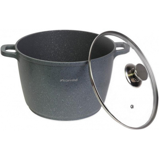 Кастрюля алюминиевая с крышкой Kamille 10л 28 х 20см литая с антипригарным покрытием "Granite" (4428)