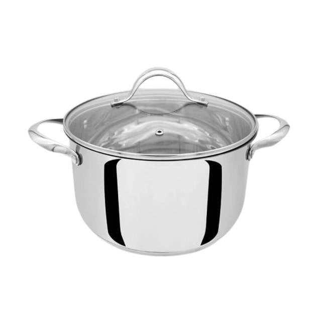 Кастрюля сделана из нержавеющей стали высочайшего качества и имеют индукционное дно, что позволяет использовать посуду на всех видах плит. Крышка из термостойкого стекла оснащена отверстием для выхода пара.