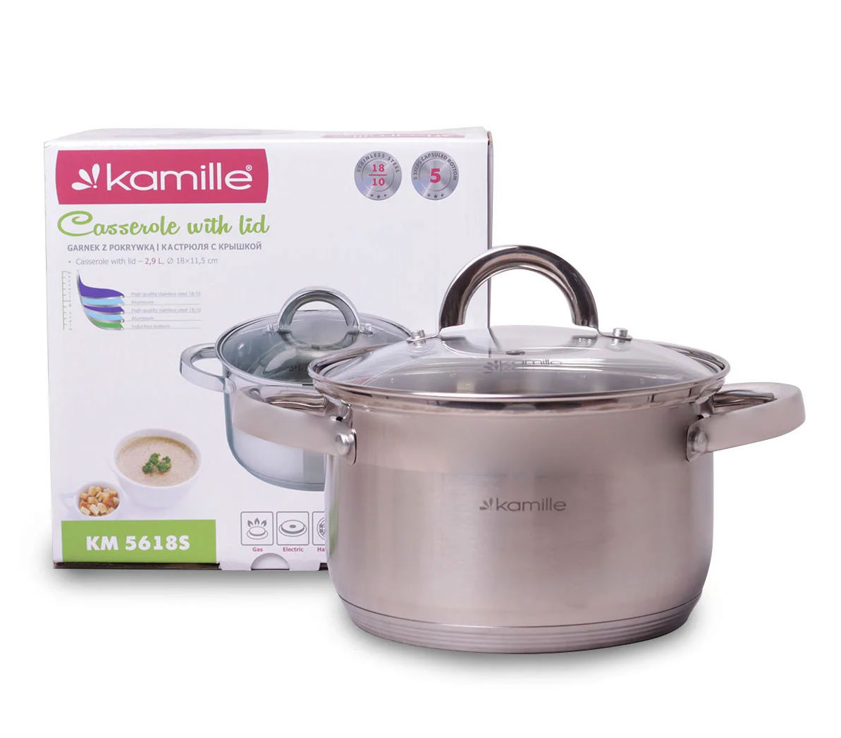 Кастрюля Kamille — нужная и незаменимая вещь на Вашей кухне. Кастрюля выполнена из качественных материалов с использованием современных технологий производства. Такая кастрюля имеет прекрасный внешний вид, оснащена 5-слойным капсульным дном и отличается высокой прочностью и долговечностью в использовании. Благодаря своим эргономичным свойствам, кастрюля будет служить Вам очень долго и принесет только удовольствие от использования.