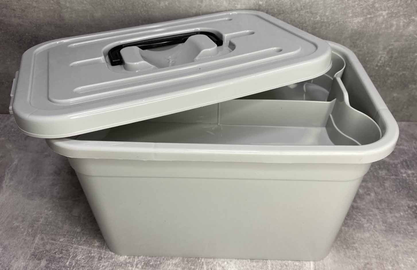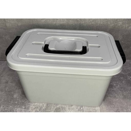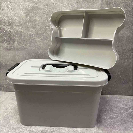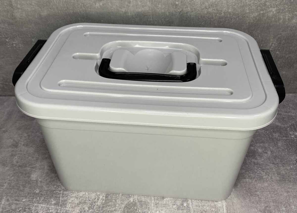 Контейнер плотно закрывается крышкой на 2 замка-защелки по бокам. Сверху на крышке расположена ручка для переноски. Контейнер подойдет для хранения бытовых вещей, медикаментов. Также этот контейнер можно использовать для хранения мелких инструментов.