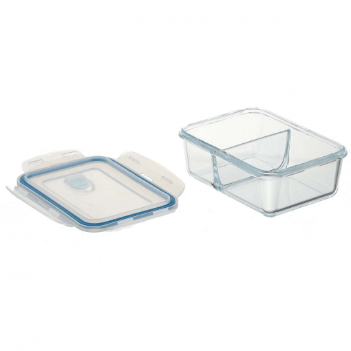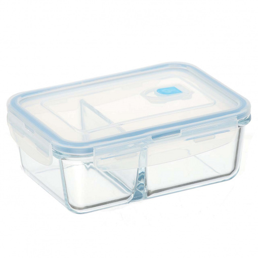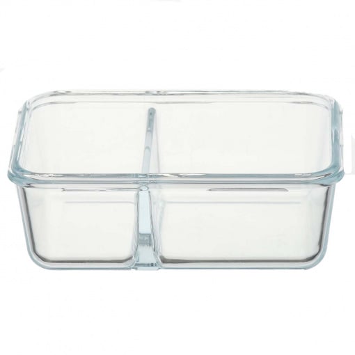 Жаростойкая посуда из закаленного стекла. Можно использовать в микроволновке, духовке, холодильнике и посудомоечной машине. Контейнер прекрасно подойдет для того, чтобы брать с собой обед на работу, удобен тем, что имеет два отдела и еда не будет перемешиваться. Не занимает много места.