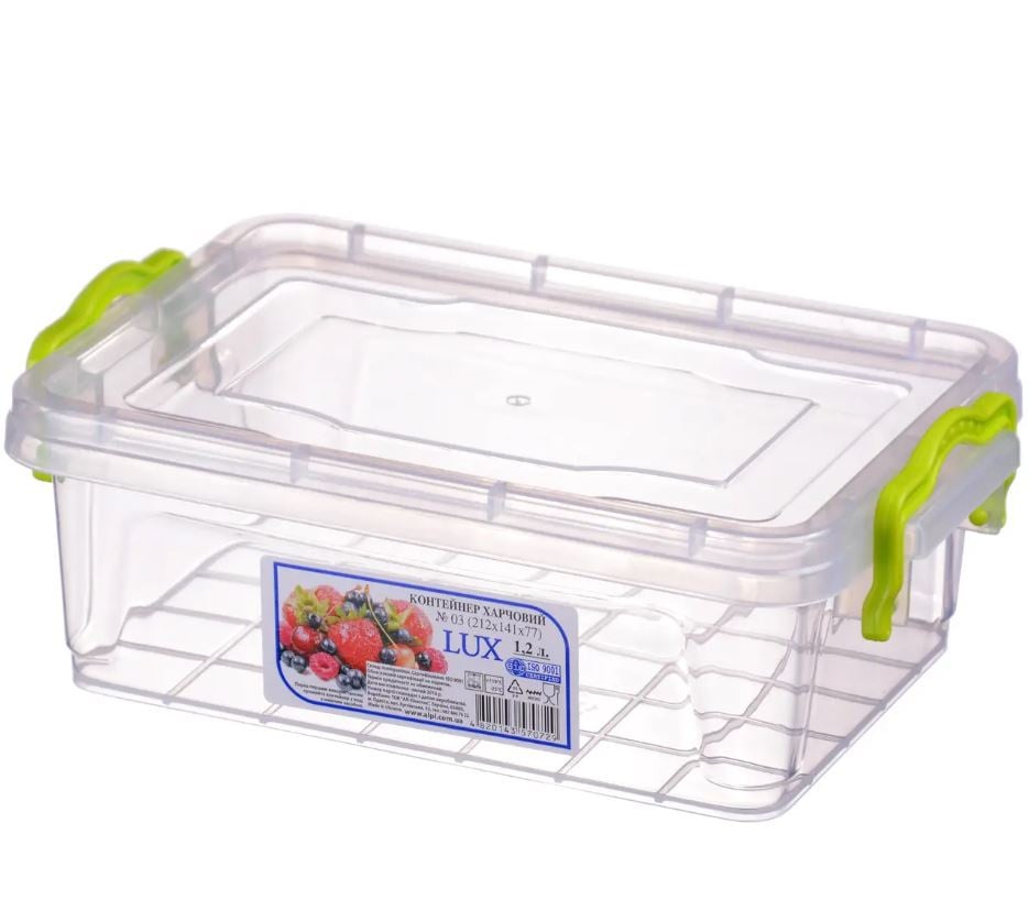 Контейнер пищевой Lux № 03 (1.2 л) с ручками плотно удерживающими крышку, благодаря чему содержимое не протекает. За счёт устойчивости и углублении в крышке можно ставить контейнер один на другой и максимально оптимизировать пространство в шкафах, на полках, в холодильнике. В контейнерах Lux № 03 можно хранить и переносить: фрукты, овощи, зелень, сыпучие, готовые продуты (бутерброды, салаты, вторые блюда), бытовые мелочи. Также используется для замораживания продуктов без потери полезных микроэлементов. Благодаря экологичности сырья не выделяет вредоносные элементы, отвечает европейским стандартам качества ISO 9001. Взаимодействует с пищевыми продуктами, не меняя при этом их вкусовые качества и не влияя на аромат.
