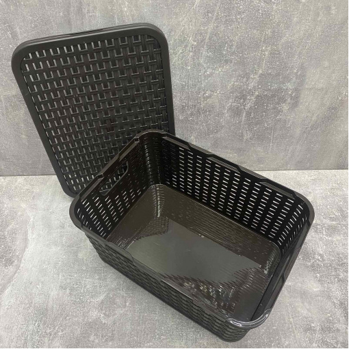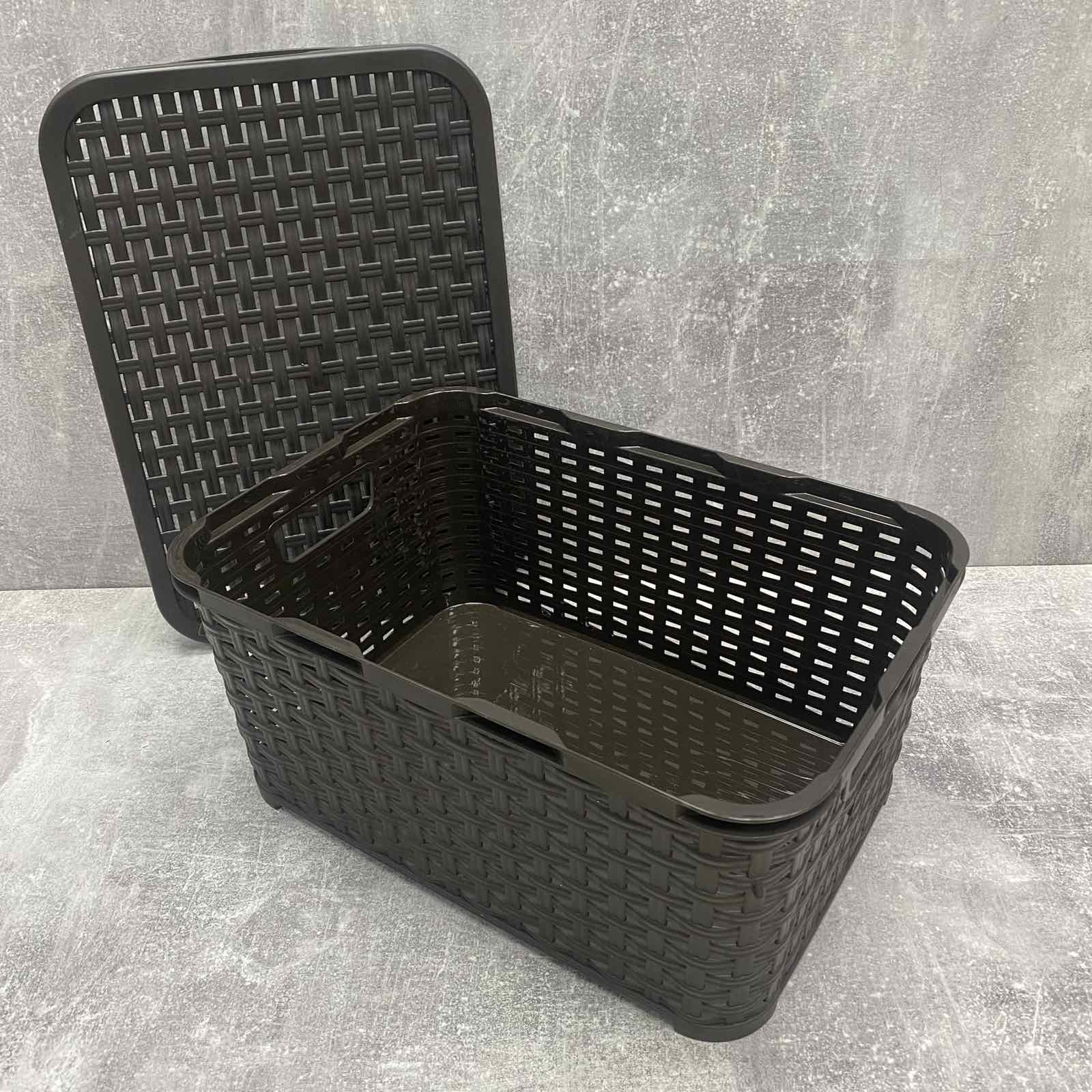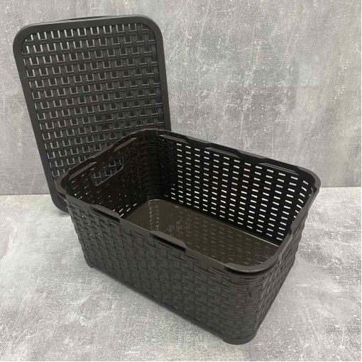 Корзина с крышкой для бытовых предметов с ручками хорошая и незаменимая вещь для хозяйства.