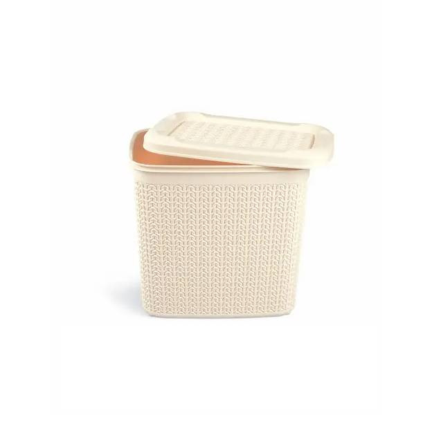Корзина для порошка с крышкой или для хранения различных вещей, очень вместительна и изготовлена ​​из гипоаллергенного высококачественного пластика, высокая прочность материала к механическим и химическим воздействиям. Используется для хранения различных вещей для дома, продуктов питания, текстиля, игрушек и всего прочего. Отлично подойдет для современного интерьера, поскольку внешний корпус выполнен в виде необычного узора вязка.