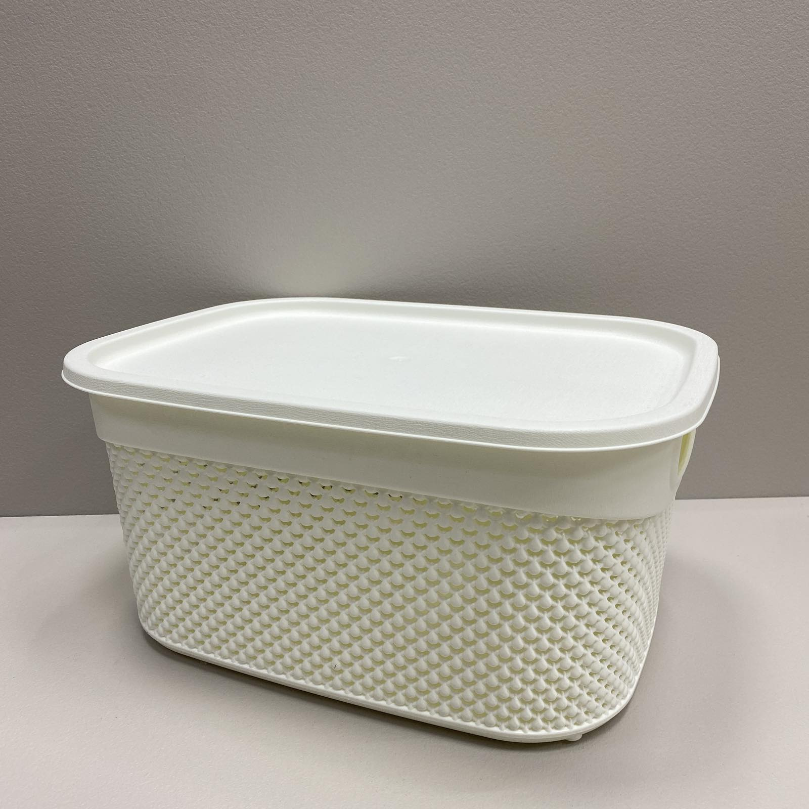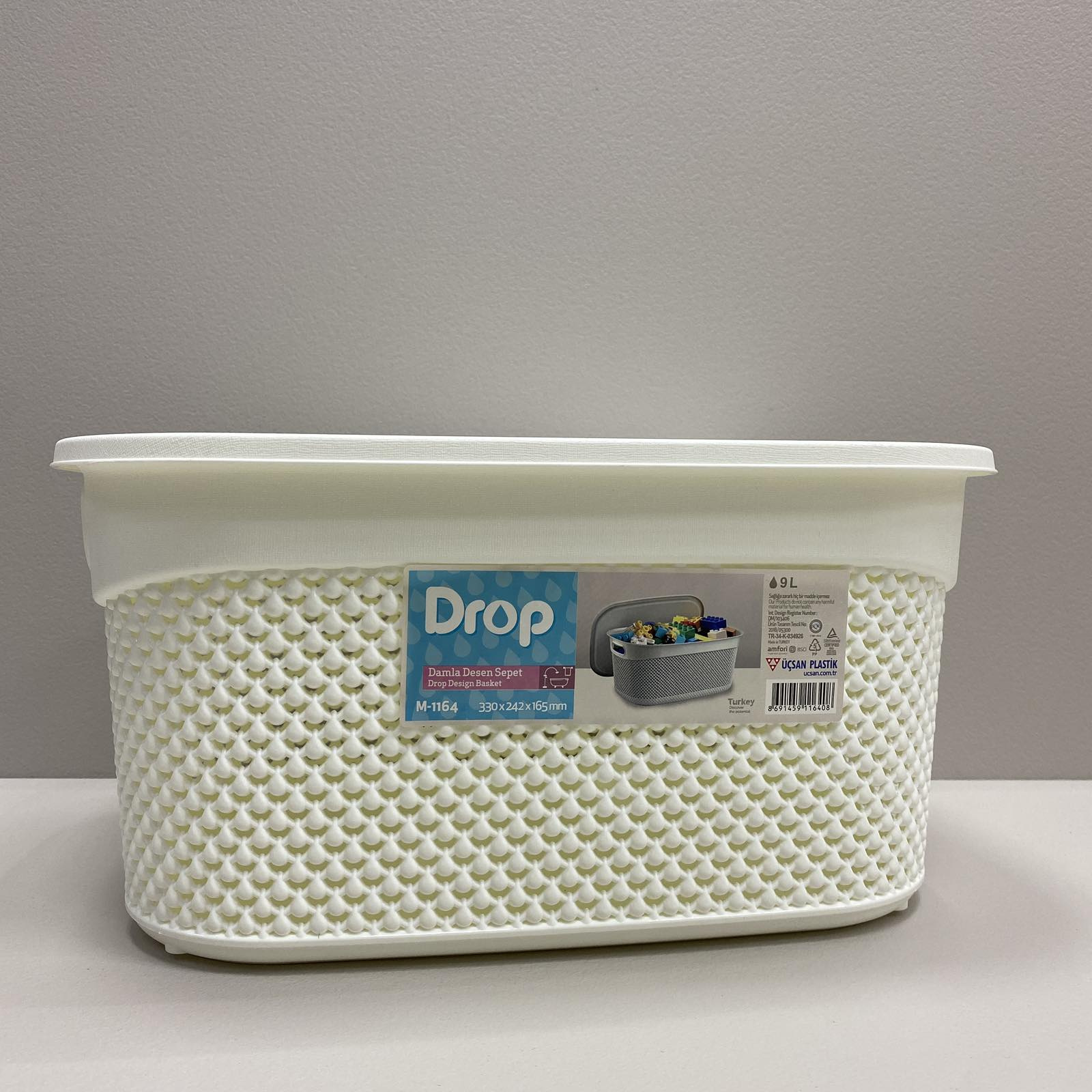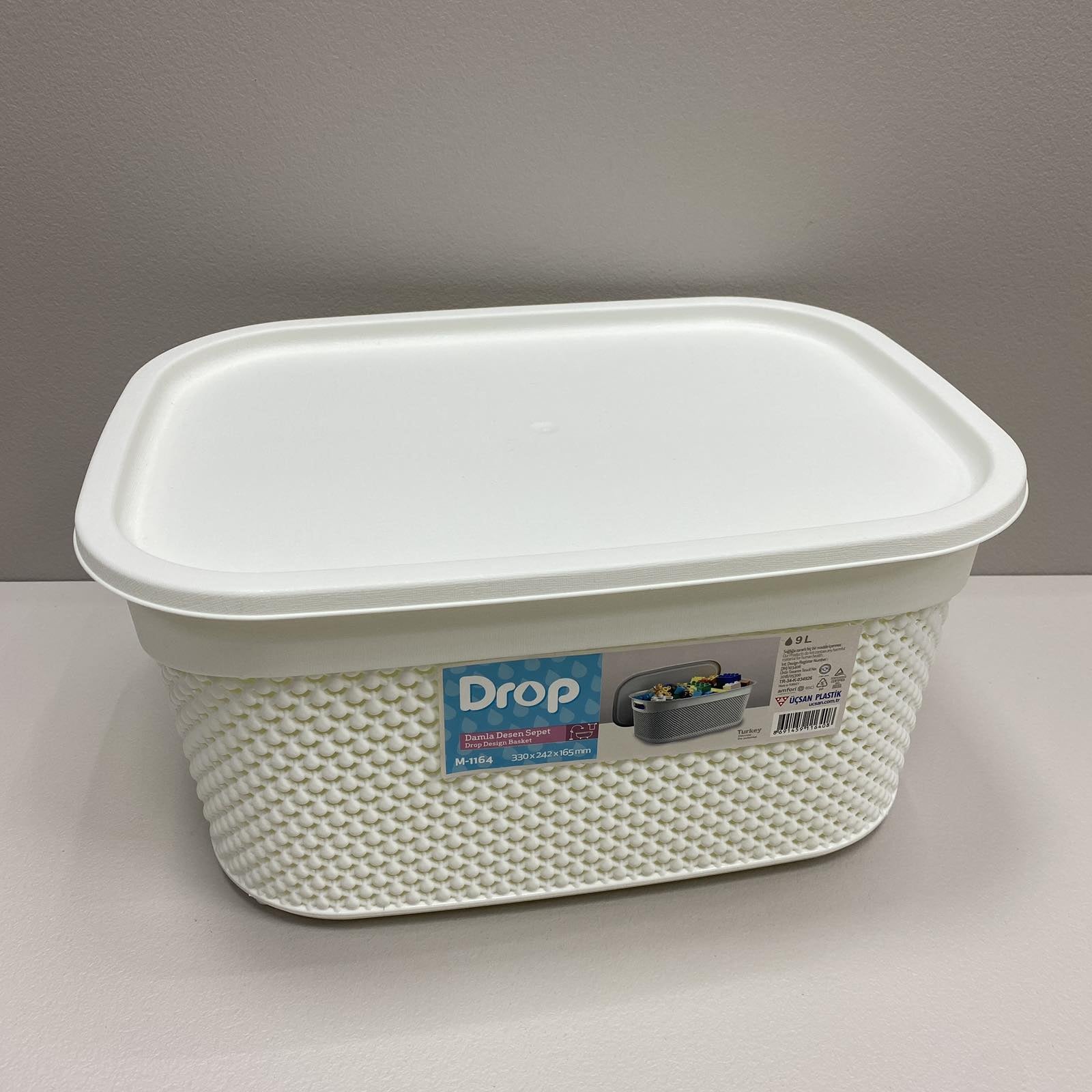 Корзина пластиковая с крышкой 33*24*16,5 см 9 л Ucsan Plastik М-1164 белая Корзина для хранения с крышкой, очень вместительная изготовлена ​​из гипоаллергенного материала - полипропилена. Высокая прочность материала к механическим и химическим воздействиям. Используется для хранения различных принадлежностей для дома: фруктов, текстиля, игрушек и прочего. Отлично подойдет для современного интерьера, поскольку наружный корпус выполнен в виде необычного узора DROP DESIGN. Характеристика: Вид: Корзина Материал: Пластик Цвет: Белый Размер: 33*24*16,5 см Объем: 9 л Форма: Прямоугольная