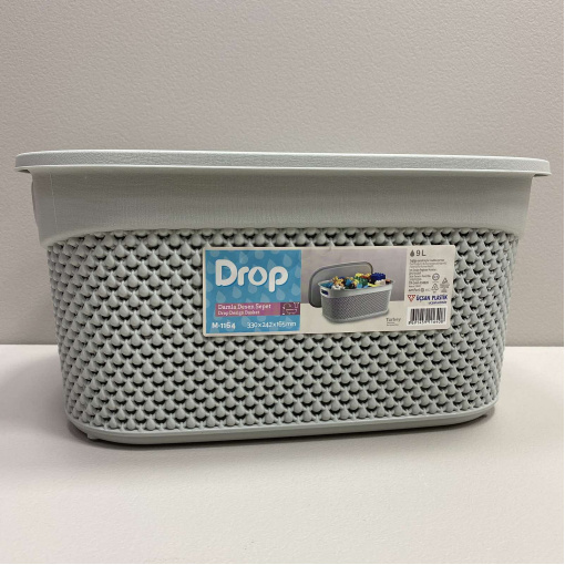 Корзина пластиковая с крышкой 33*24*16,5 см 9 л Ucsan Plastik М-1164 серая Корзина для хранения с крышкой, очень вместительная изготовлена ​​из гипоаллергенного материала - полипропилена. Высокая прочность материала к механическим и химическим воздействиям. Используется для хранения различных принадлежностей для дома: фруктов, текстиля, игрушек и прочего. Отлично подойдет для современного интерьера, поскольку наружный корпус выполнен в виде необычного узора DROP DESIGN. Характеристика: Вид: Корзина Материал: Пластик Цвет: Серый Размер: 33*24*16,5 см Объем: 9 л Форма: Прямоугольная