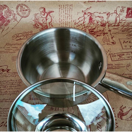 Ковш изготовлен из высококачественной пищевой стали 18/10. Многослойное дно отлично подойдет как для индукционных плит, так и для газовых, электрических или стеклокерамических плит, а также способствует эффективному распределению тепла и защищает посуду от деформации. Ковш обладает удобной шкалой объемов жидкости на внутренней поверхности. Удобная длинная, пустая ручка из нержавеющей стали не нагревается и имеет надежную заклепочную крепь. Характеристика: