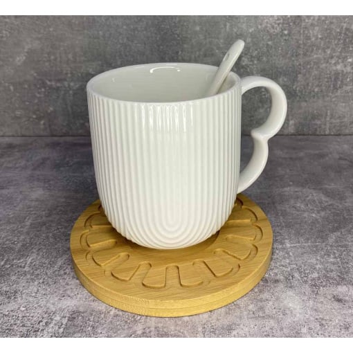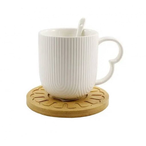 Подробные характеристики Кружка фарфоровая с ложкой на деревянной подставке 340 мл Interos PJ03443-1C.