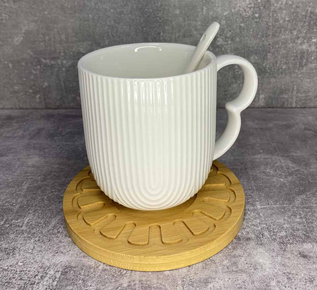 Кружка фарфоровая с ложкой на деревянной подставке 340 мл Interos PJ03443-1C