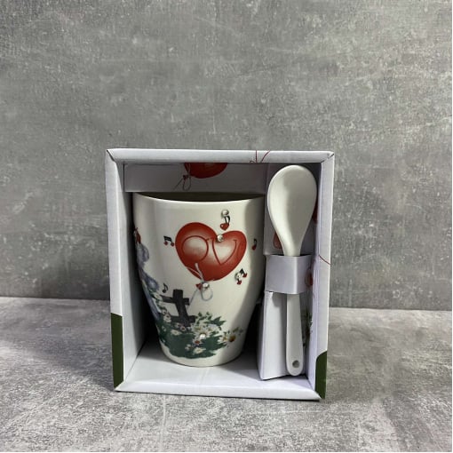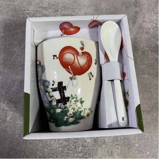 Кружка с ложкой из керамики. Удобная вместительная кружка незаменима для дома и на рабочем столе в офисе. Также идеально подойдёт для домашнего использования.