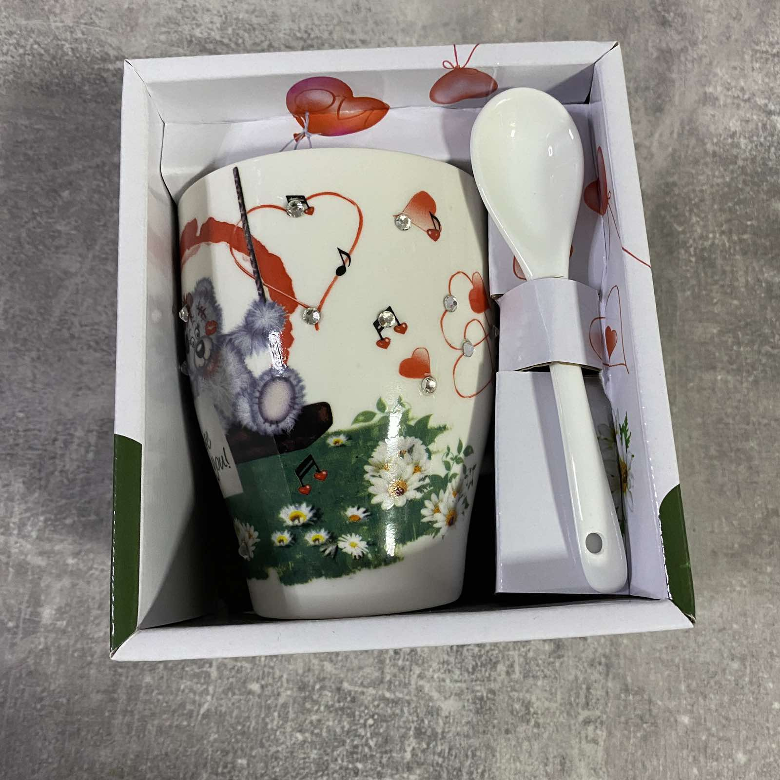 Кружка с ложкой из керамики. Удобная вместительная кружка незаменима для дома и на рабочем столе в офисе. Также идеально подойдёт для домашнего использования.