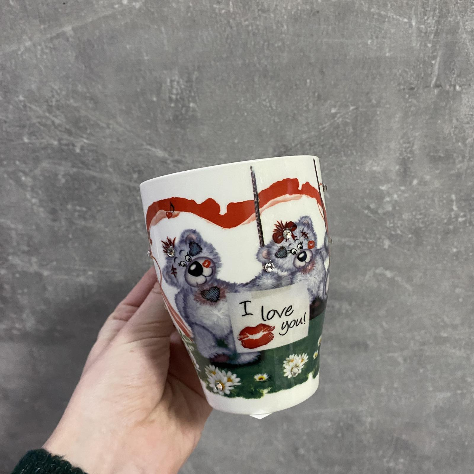 Кружка с ложкой со стразами 300 мл S&T 2064