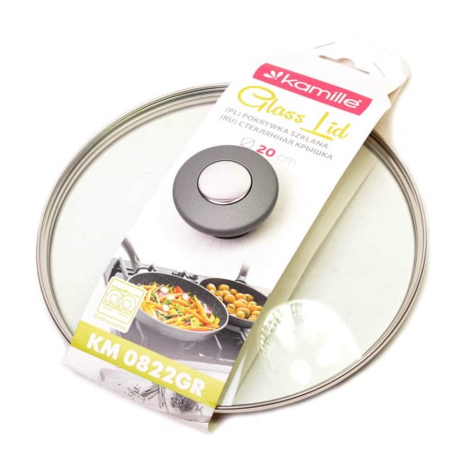 Крышка стеклянная d-20 см с металлическим ободком универсальная Kamille КМ-0821GR